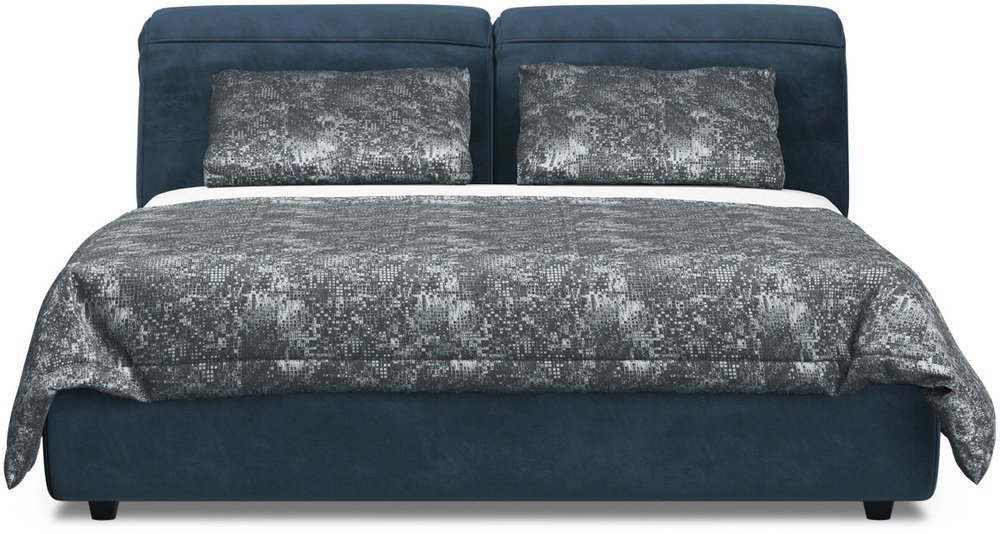 Обратная сторона изголовья, обитая тканью, позволяет ставить кровать в центре комнаты и зонировать пространство.