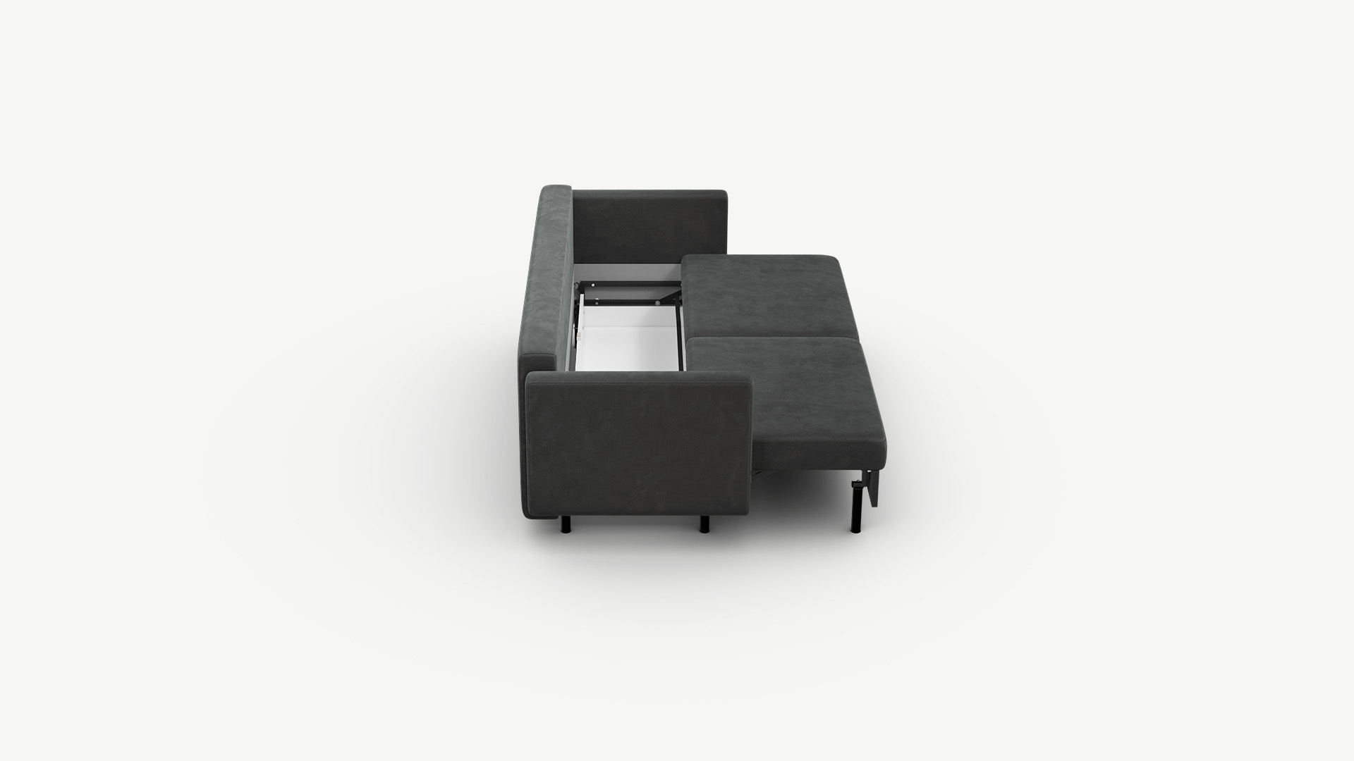 Механизм трансформации «Пантограф» подходит для ежедневного использования. Диван легко раскладывается и складывается, не повреждая напольное покрытие. Диван стоит на четырех основных опорах, в то время как дополнительные остаются скрытыми, появляясь плавно и бесшумно в единственно нужный момент — при трансформации дивана в кровать.