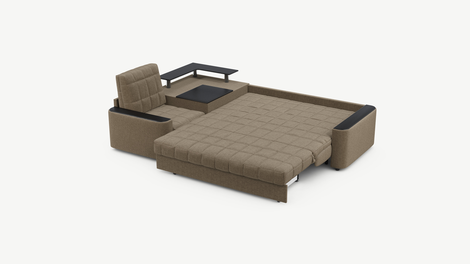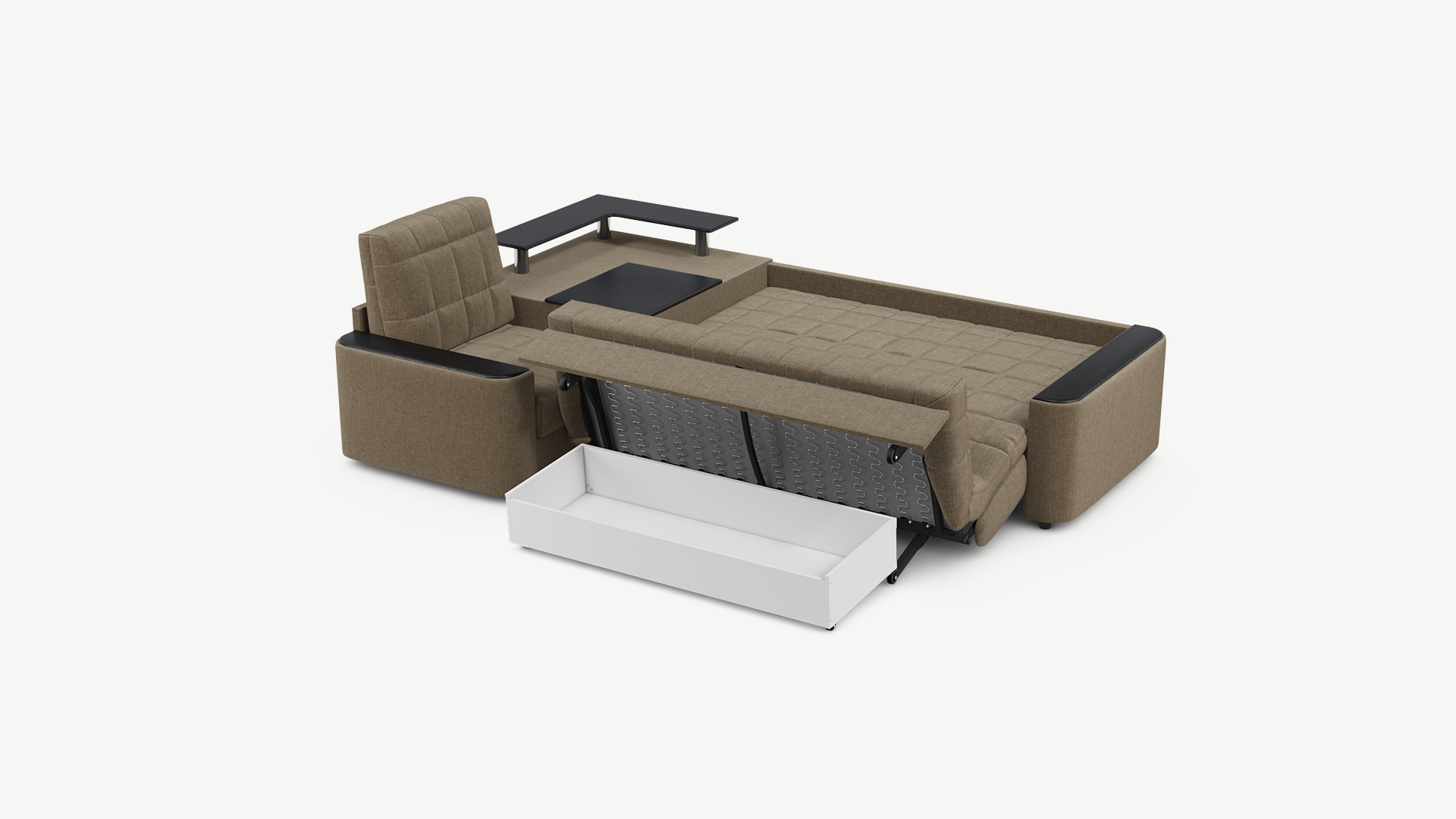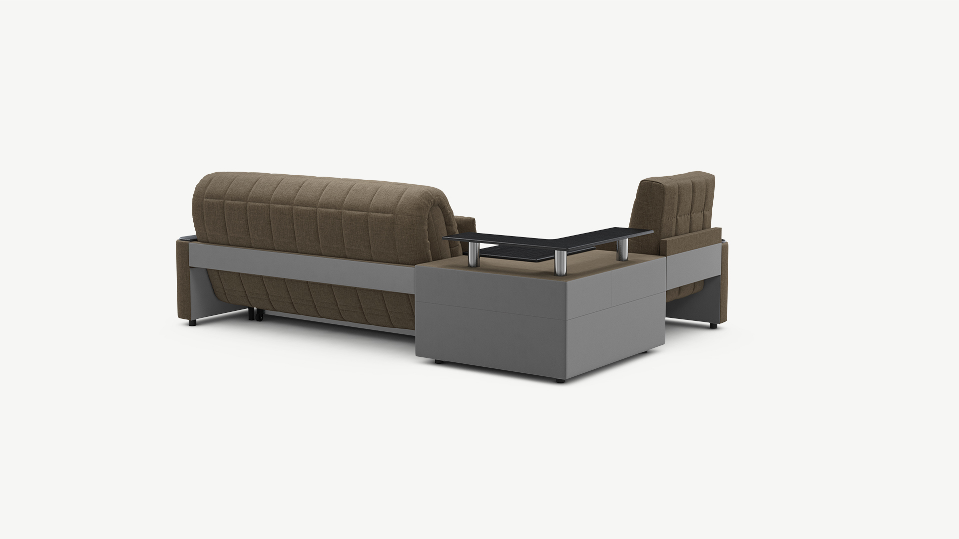 Выбирая угловой диван со столиком, Вы сможете проводить время с максимальным комфортом, многократно повысив функциональность дивана. Все дело в том, что под столешницей модуля расположена вместительная емкость для хранения. Кроме того, поверхность столика — идеальное пространство для чаепития в приятной компании, а также место для множества актуальных мелочей — от ноутбука до косметики.