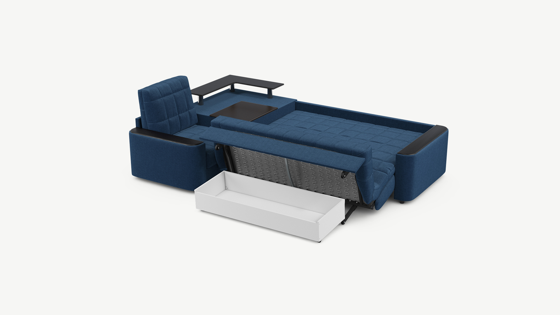 Выбирая угловой диван со столиком, Вы сможете проводить время с максимальным комфортом, многократно повысив функциональность дивана. Все дело в том, что под столешницей модуля расположена вместительная емкость для хранения. Кроме того, поверхность столика — идеальное пространство для чаепития в приятной компании, а также место для множества актуальных мелочей — от ноутбука до косметики.