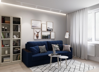 Спинка, выполненная в обивочной ткани, позволяет ставить диван в центре комнаты и зонировать пространство.