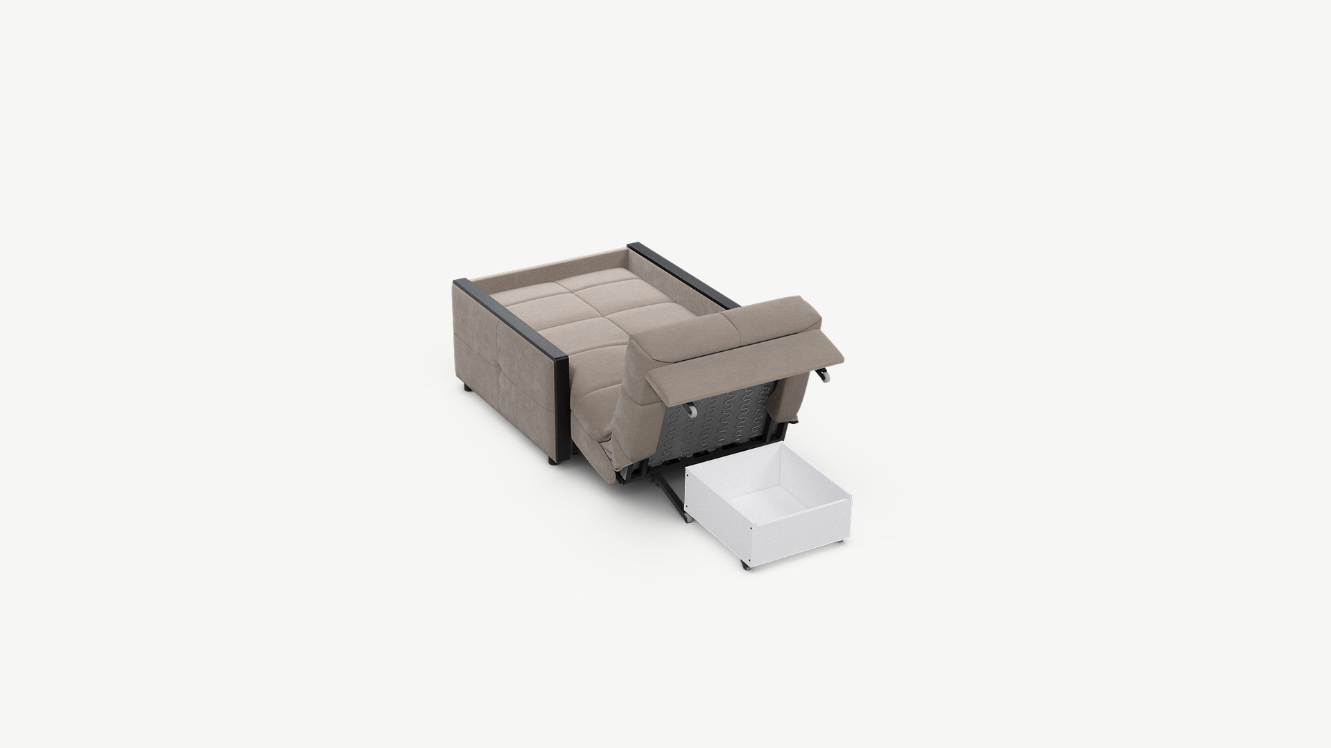 В качестве дополнительной опции к креслу-кровати предлагается бельевой короб, который устанавливается под механизм трансформации.