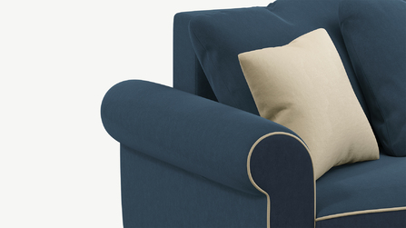 Дизайн MOON FAMILY 123 с винтажной формой подлокотников настраивает на звучание классики. Однако приспинные подушки, решенные по принципу декоративных, добавляют образу динамики, удачно включая диван в модный контекст дня.