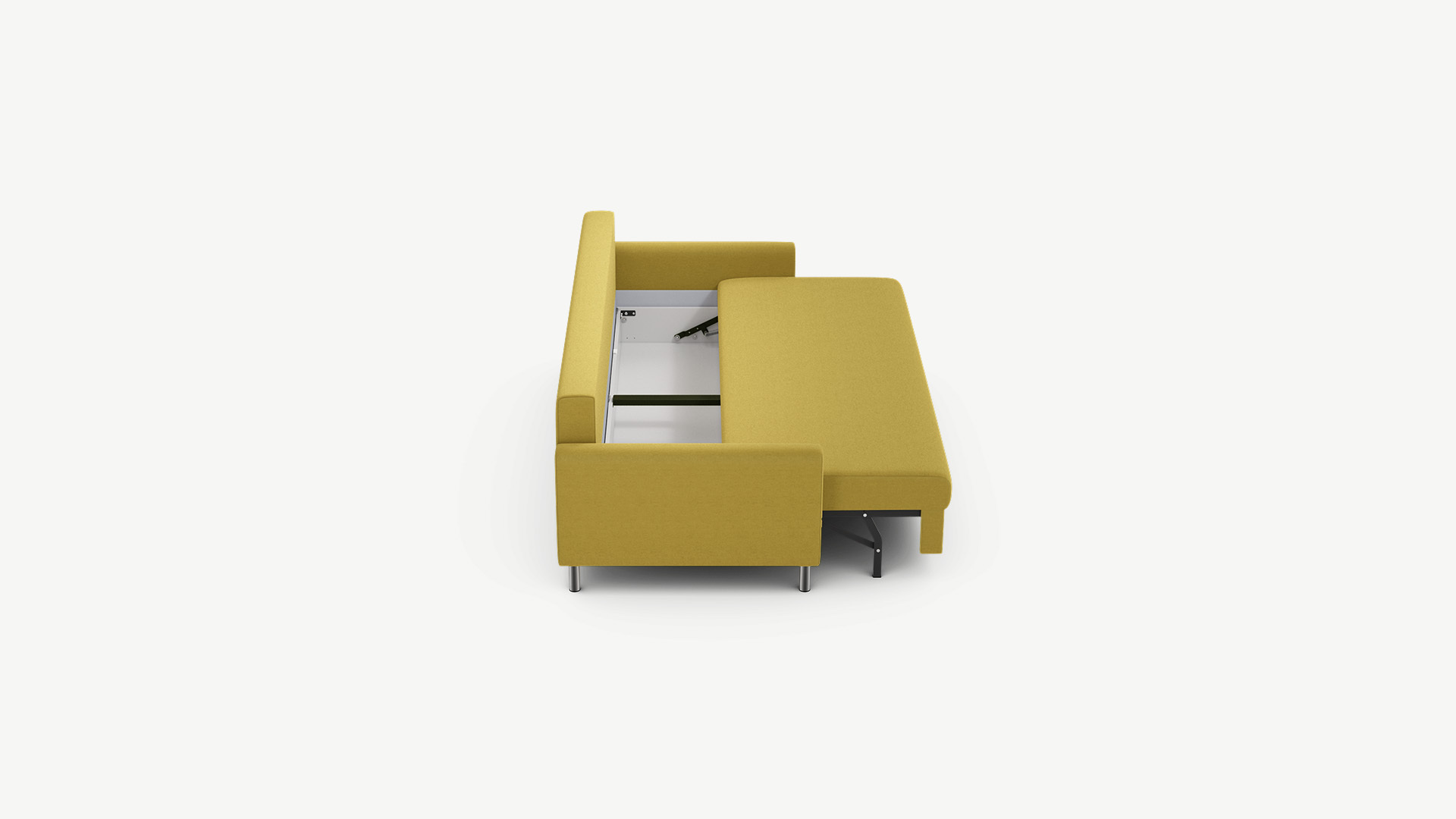 Механизм трансформации «Пантограф» подходит для ежедневного использования. Диван раскладывается и складывается, не повреждая напольное покрытие. Диван стоит на четырех опорах, в то время как дополнительные остаются скрытыми, появляясь плавно и бесшумно в единственно нужный момент — при трансформации дивана в кровать.