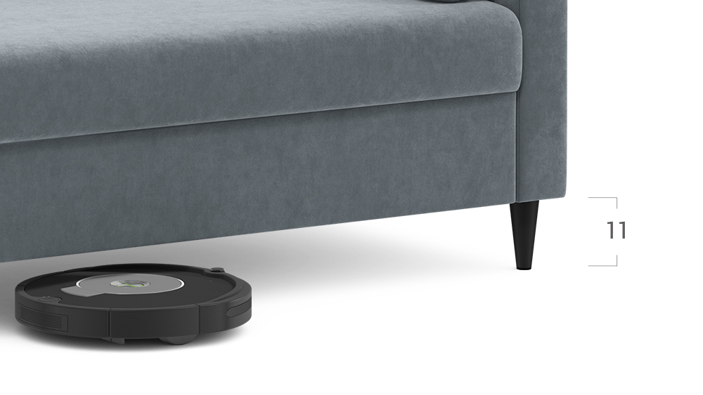 Благодаря высоким опорам под диваном проходит робот — пылесос и легко проводится влажная уборка, что обеспечивает чистоту и порядок в доме. Цвет опор подбирается дизайнерами с учетом фактуры и цвета обивочного материала, а также последних модных тенденций.