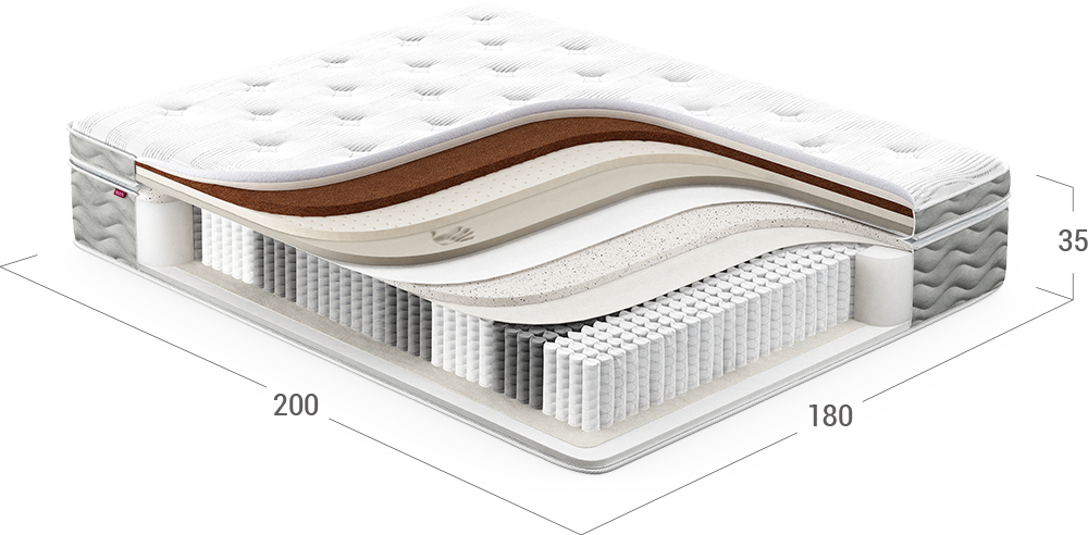 Надежно изолирует комфортные слои от соприкосновения с пружинным блоком и защищает материалы наполнения матраса от износа.