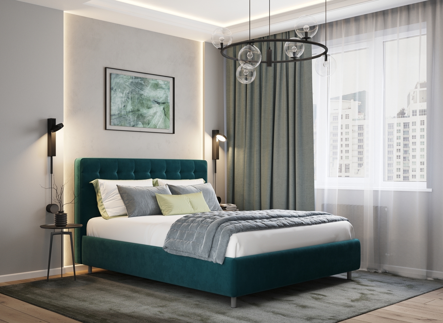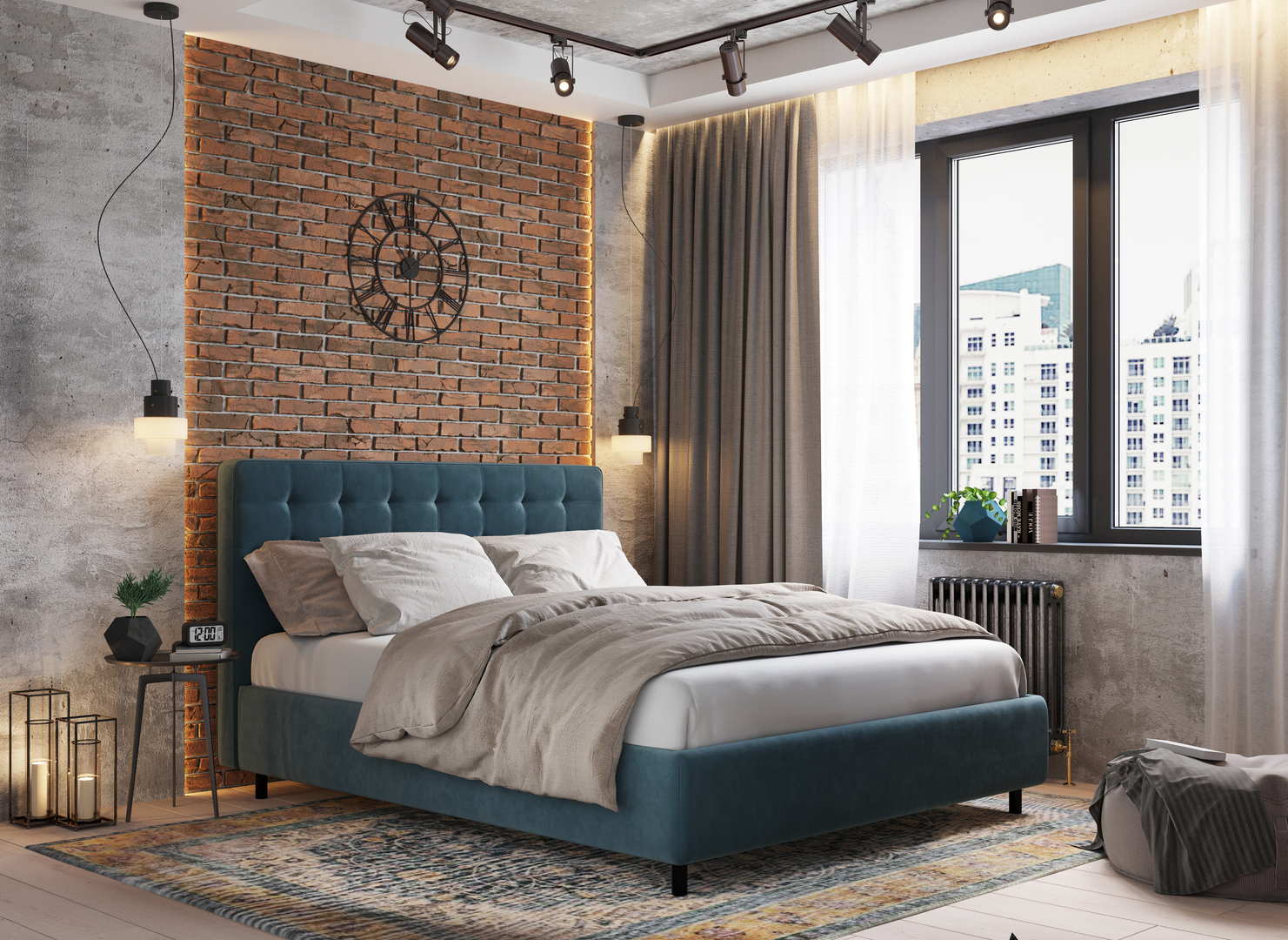 Заказали кровать с подушками-валиками, очень необычный дизайн нам показался. Выбрали высокие опоры для удобства в уборке, а изголовье не стали брать высокое, больше понравился низкий вариант. Приятно, что в магазине большой выбор тканей и цветов. Мы выбрали яркий бирюзовой, в нашей комнате кровать выглядит просто потрясающе! Кровать стала ярким акцентом. Это очень круто, что компания дает возможность сделать интерьер таким, как хочется. По качеству также нет претензий. Обита ровно, ни складок не, ни неровностей. Ламели ровные, матрас на них лежит идеально. Мы остались довольны, всем рекомендуем к покупке.
