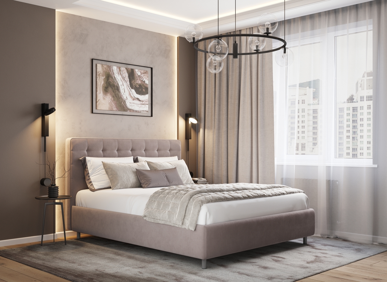 Оформите образ кровати, выбирая обивочный материал, который подчеркнет звучание Вашей спальни и отразит Ваш вкус. Обратите внимание на однотонный гладкий велюр, который усиливает объемную фактуру стежки.