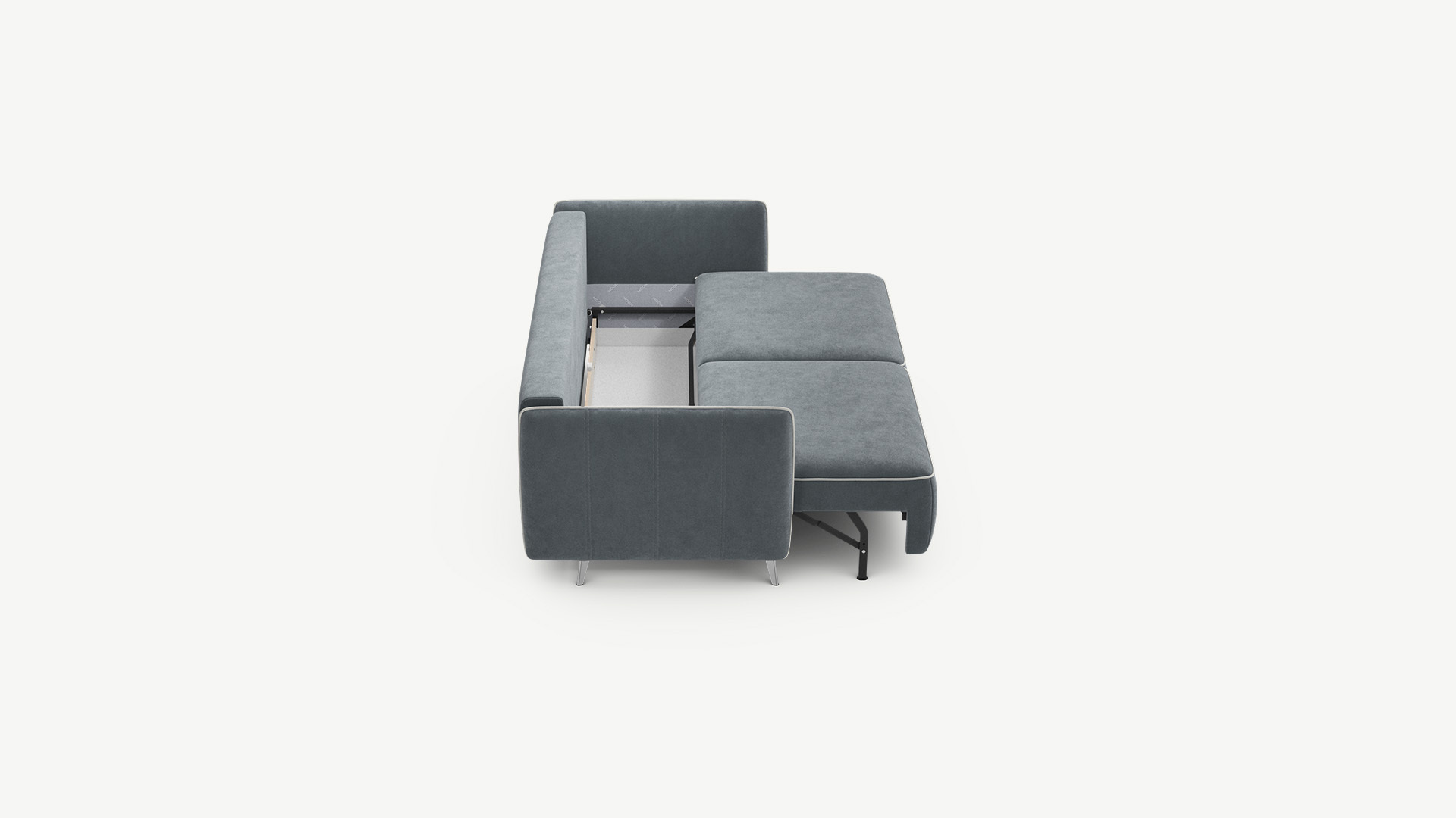 Механизм трансформации «Пантограф» подходит для ежедневного использования. Позволяет легко раскладывать и складывать диван, обеспечивая минимальный контакт дополнительных опор с напольным покрытием. Диван стоит на четырех наклонных опорах, в то время как дополнительные остаются скрытыми, появляясь плавно и бесшумно в единственно нужный момент — при трансформации дивана в кровать.