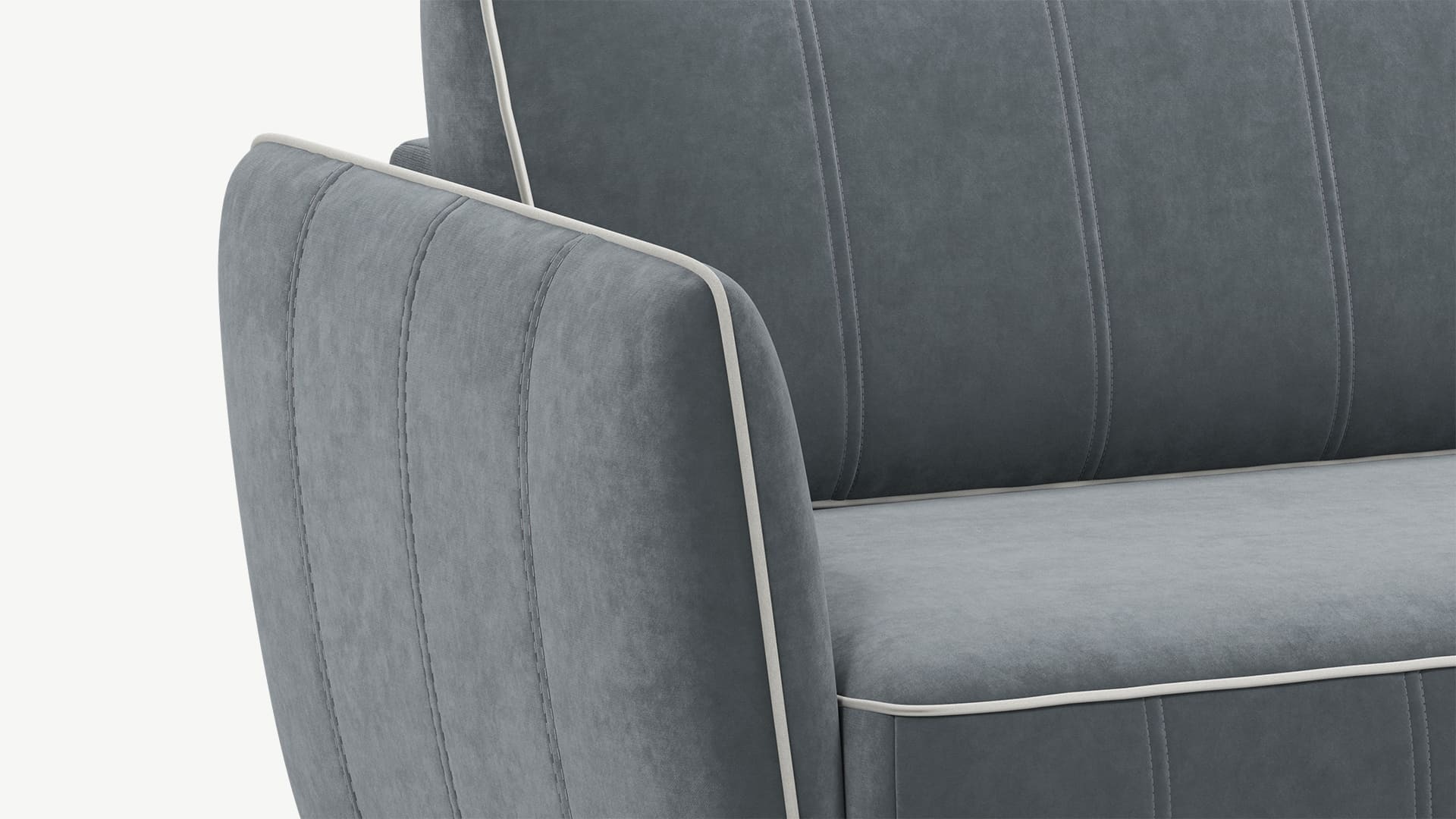 Декоративный кант, проходящий по всем элементам дивана, подчеркивает роскошь форм и усиливает эстетику образа.