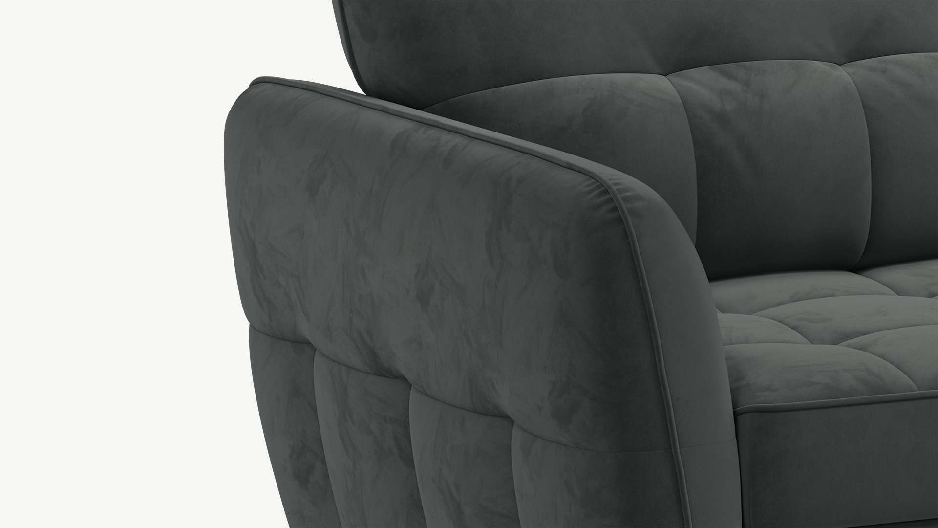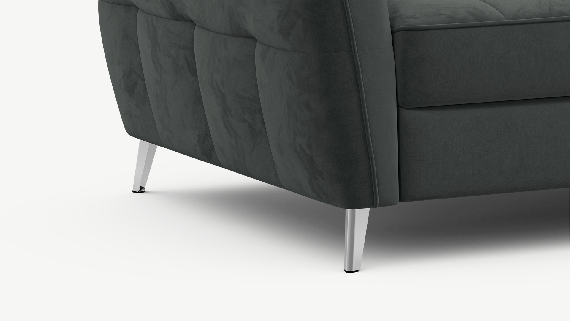 Высокие наклонные опоры дивана и украшенная стежкой задняя часть спинки – детали, задающие уровень!