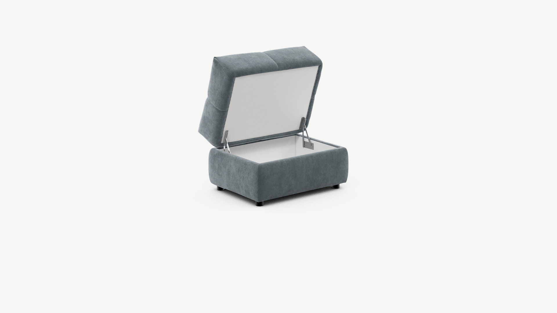 Банкетка MOON 1011 имеет вместительную емкость для хранения и механизм подъема, обеспечивающий доступ к содержимому.
