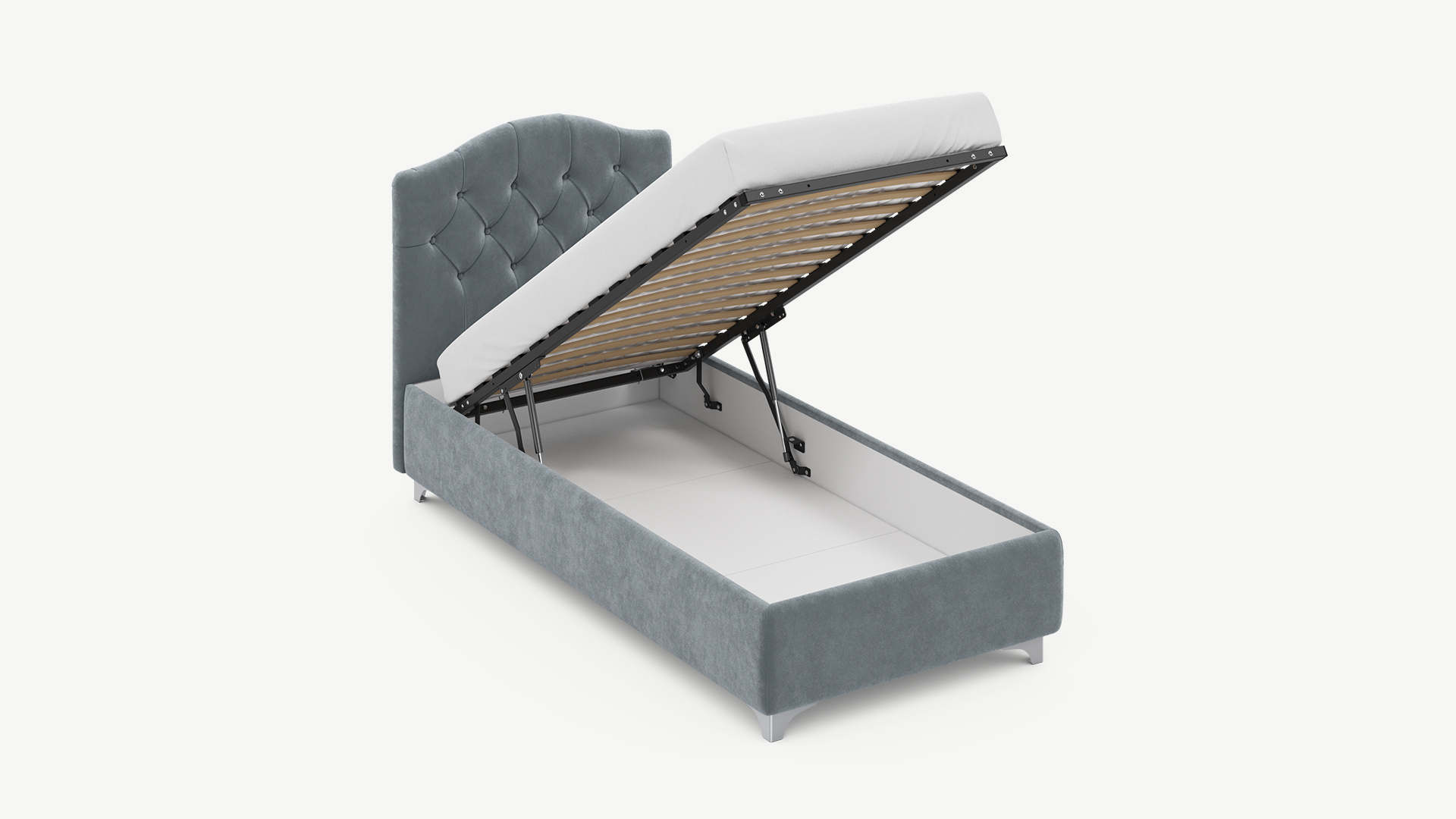 • Скрытая под основанием вместительная емкость без внутренних перегородок позволяет использовать всю площадь подкроватного пространства для хранения вещей.
