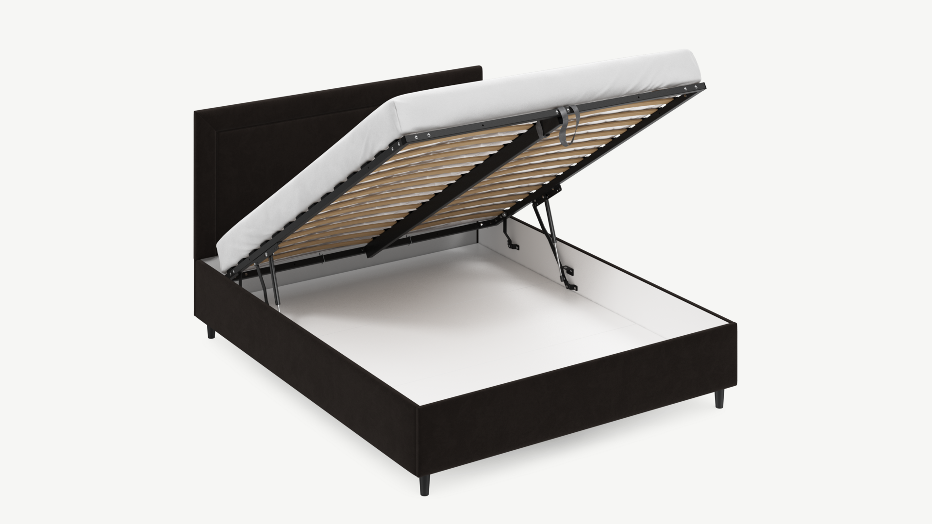 • Скрытая под основанием вместительная емкость без внутренних перегородок позволяет использовать всю площадь подкроватного пространства для хранения вещей.