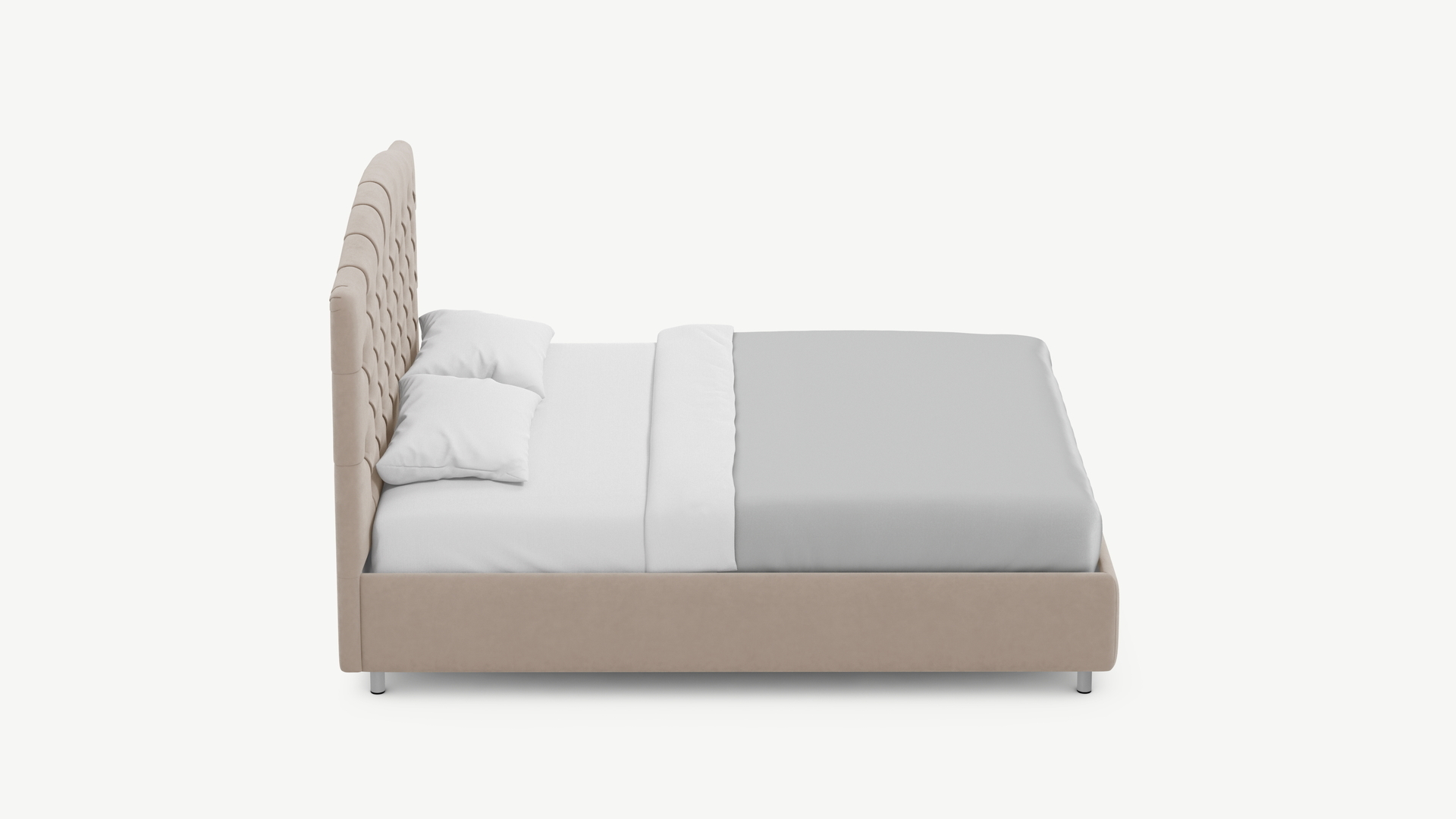 Кровать MOON 1157 создает ощущение праздника. Фигурное изголовье с классической каретной стяжкой формирует торжественный образ кровати, привнося в интерьер элементы дворцового стиля и роскоши.