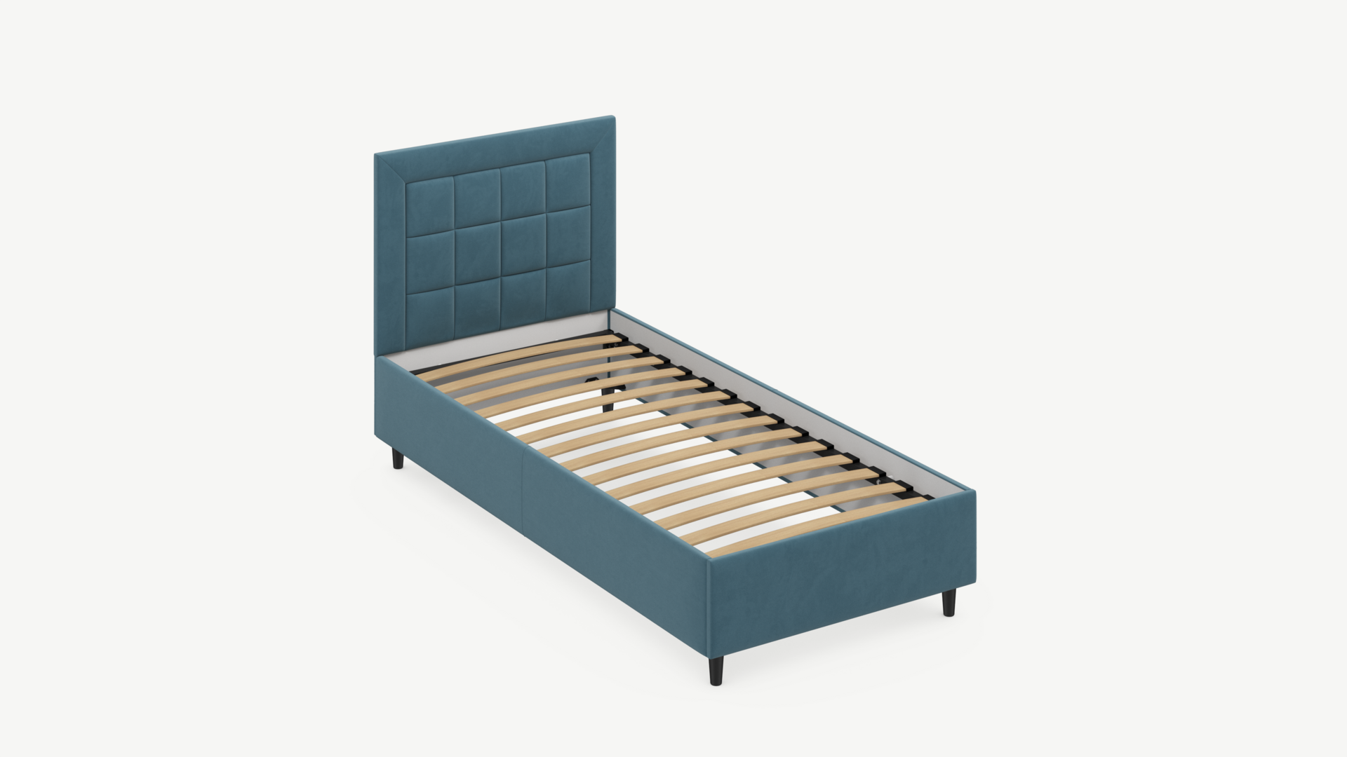 Рама, изголовье и царги надежно крепятся между собой, обеспечивая прочность и устойчивость кровати.