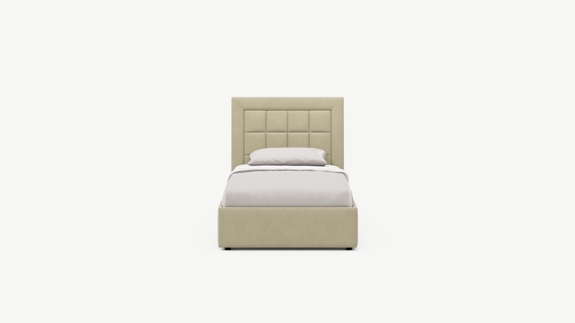 Кровать MOON FAMILY 1251 украшена объемной стежкой-рисунком. Особую выразительность стежка в крупный квадрат получает за счет глубины шва и фактурности проступающего рисунка. Помещенная в центр изголовья, стежка обрамлена тканью, словно картина – рамой. Формы MOON FAMILY 1251 оставлены максимально простыми. Едва заметные вертикальные шовчики на боковых царгах кровати добавляют образу шарма, удачно оттеняя уверенное звучание прямых и искусный декор изголовья.