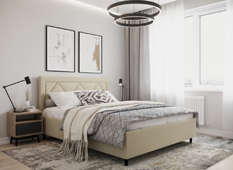Фактура обивочного материала подбирается дизайнерами с учетом технологических и стилевых особенностей кровати.