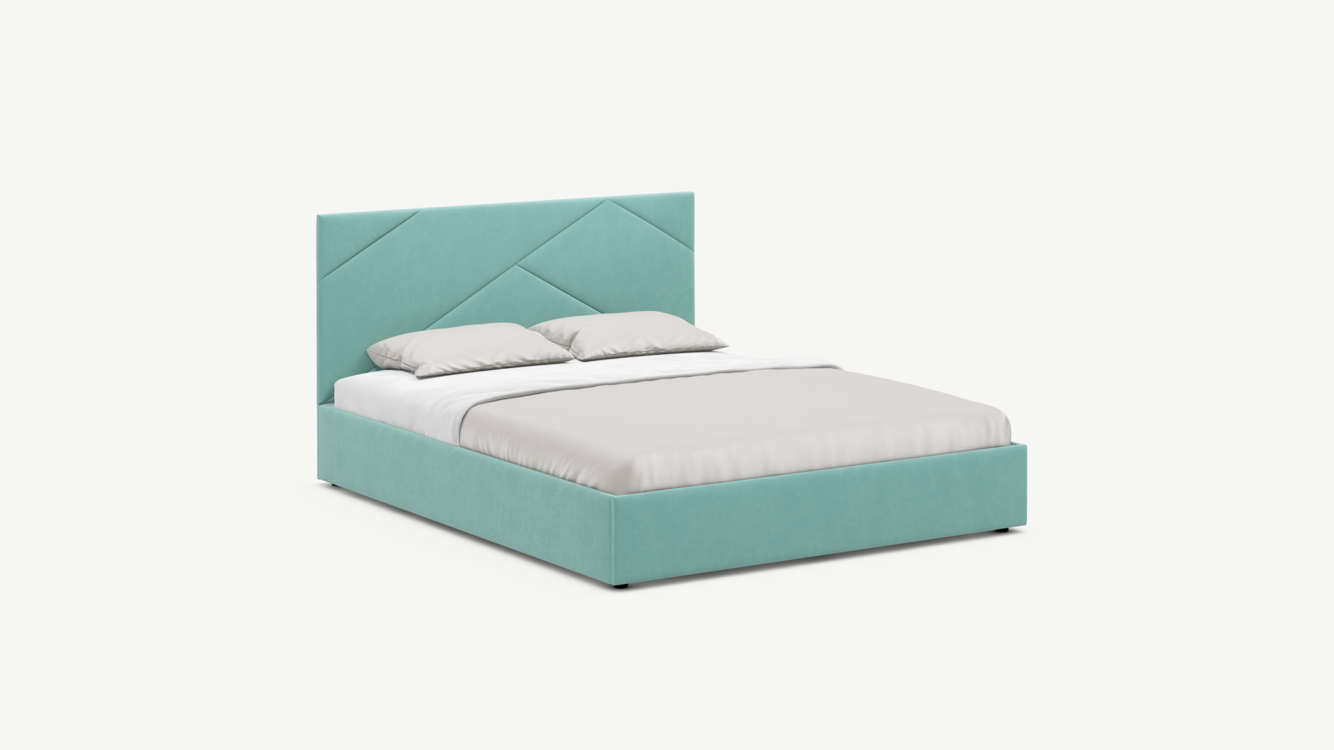 MOON FAMILY 1257 привлекает внимание оригинальным исполнением: широкие полосы ткани эффектно пересекают периметр изголовья, создавая на нем графический орнамент. Элегантным и практичным акцентом служат скрытые карманы, расположенные по его углам. Лаконичные формы объемных царг создают единый гармоничный образ и фокусируют внимание на центральном текстурном элементе кровати.