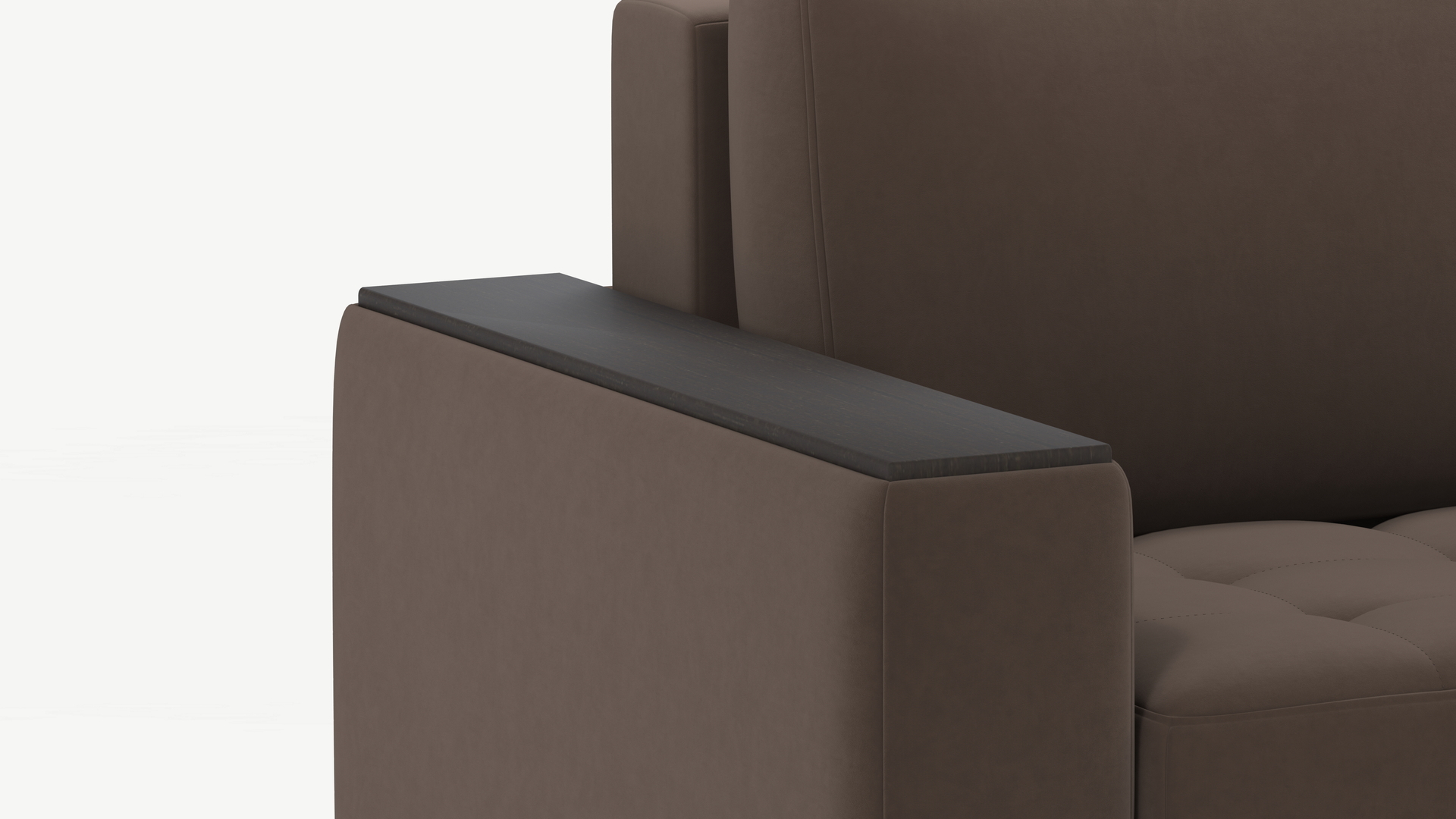 По замыслу дизайнеров, форма подушек удачно поддерживается объемными прямоугольными подлокотниками с широкой столешницей, на которую всегда можно положить книгу и пульт, телефон или планшет, а также поставить чашечку чая.