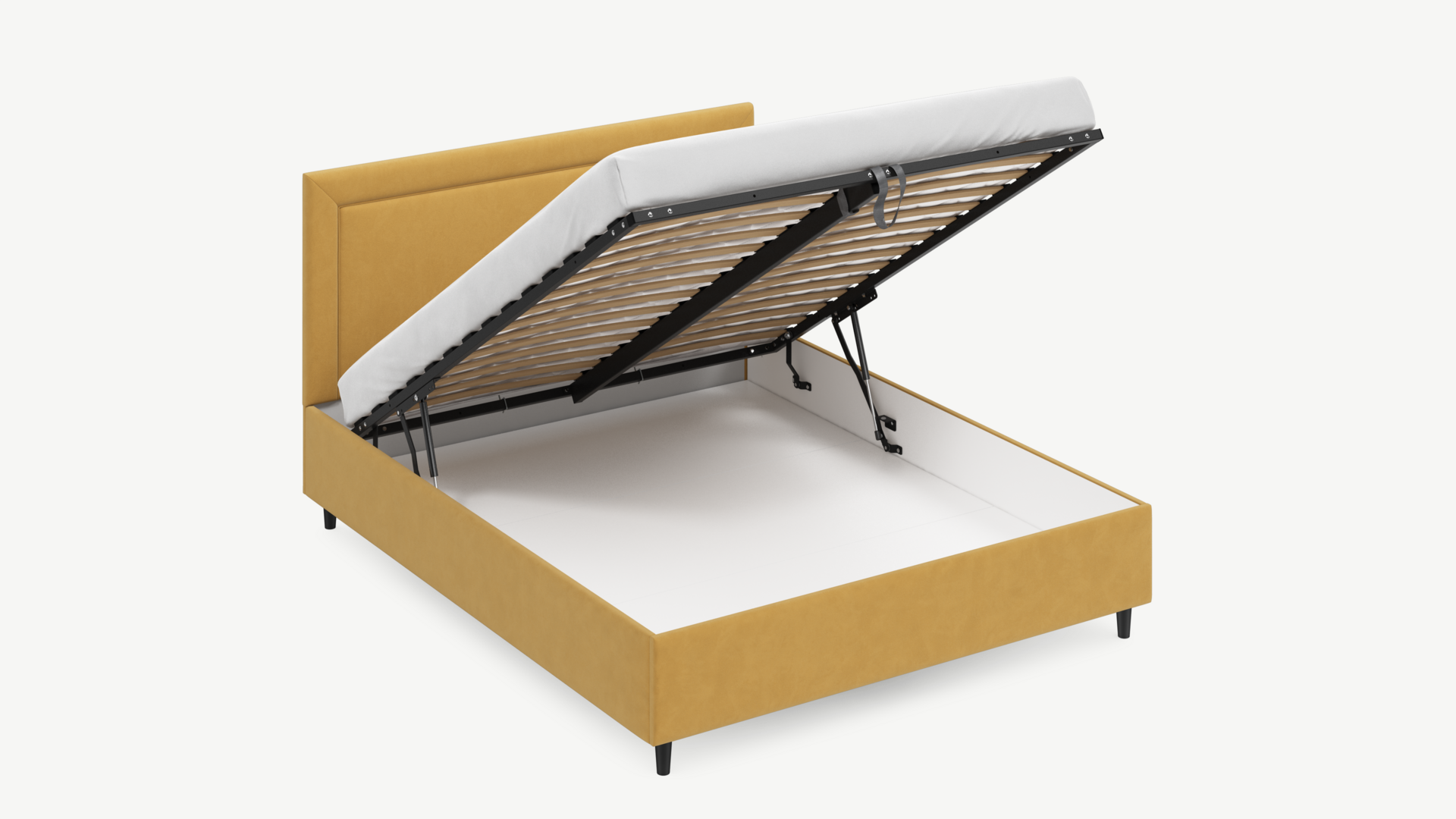 Вместительная емкость под кроватью без внутренних перегородок позволяет использовать для хранения вещей 100% пространства.