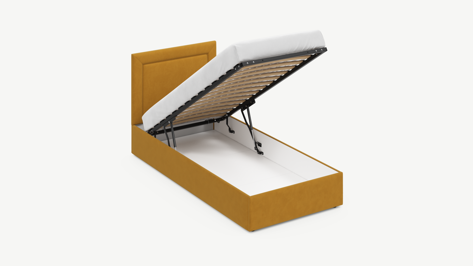 Вместительная емкость под кроватью без внутренних перегородок позволяет использовать для хранения вещей 100% пространства.
