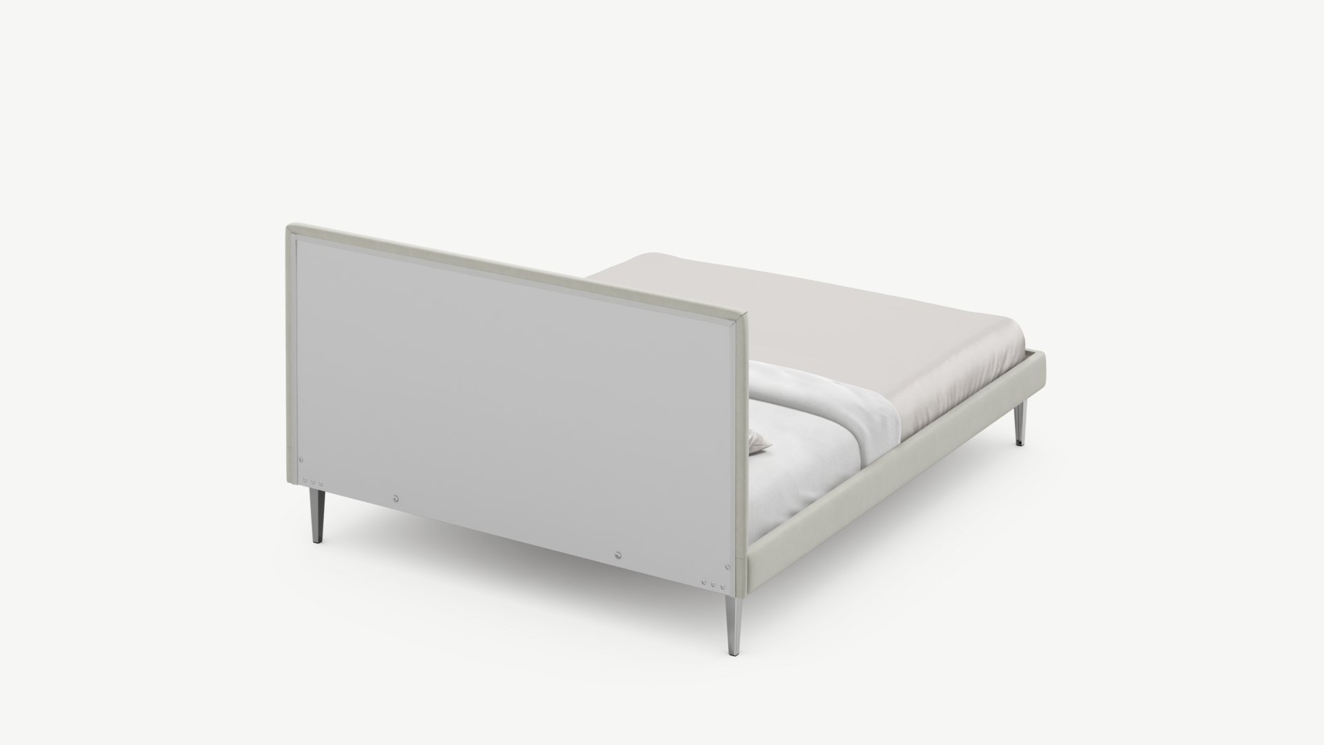 Кровать MOON FAMILY 1256 демонстрирует безупречный баланс изящных пропорций. Лаконичное изголовье, узкие царги и высокие опоры создают эффектный образ, привносящий в пространство спальни стильный и яркий акцент.