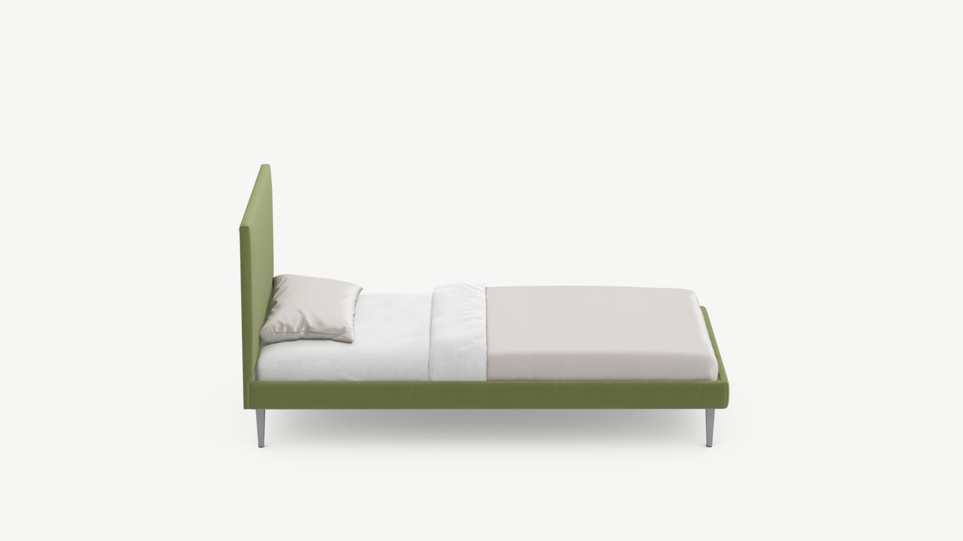Кровать MOON FAMILY 1256 демонстрирует безупречный баланс изящных пропорций. Лаконичное изголовье, узкие царги и высокие опоры создают эффектный образ, привносящий в пространство спальни стильный и яркий акцент.