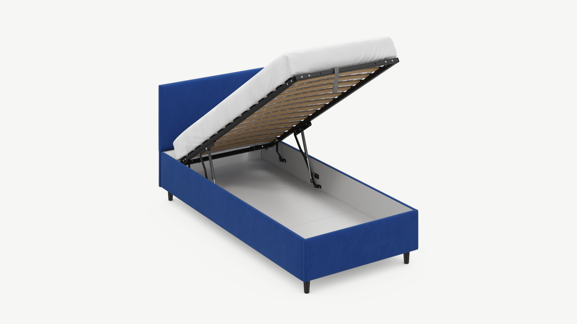 Вместительная емкость под кроватью без внутренних перегородок позволяет использовать для хранения вещей 100% пространства.