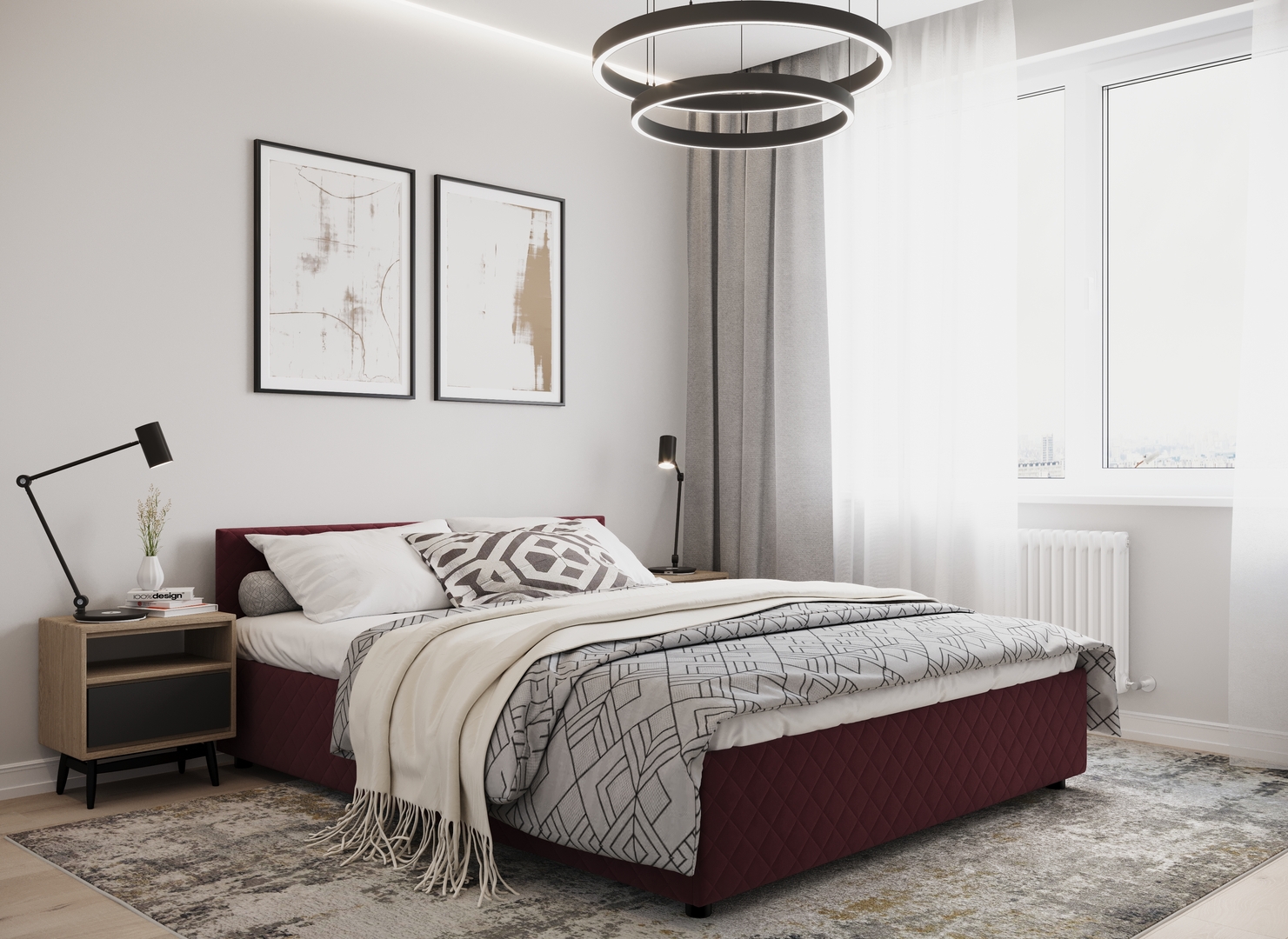 Создать гармоничный интерьер и завершить образ спальни помогут дополнительные аксессуары, например: тумбы, банкетки, подушки.