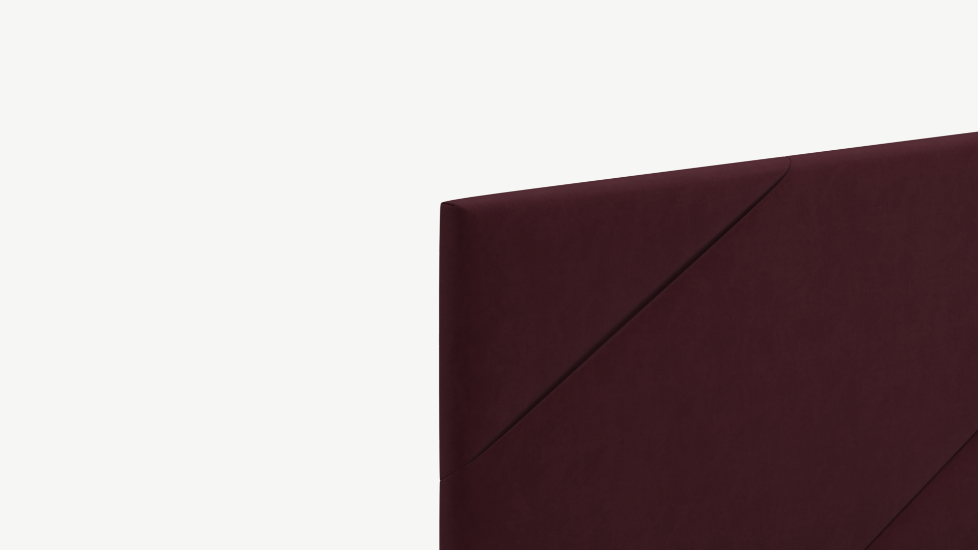 MOON FAMILY 1257 привлекает внимание оригинальным исполнением: широкие полосы ткани эффектно пересекают периметр изголовья, создавая на нем графический орнамент. Элегантным и практичным акцентом служат скрытые карманы, расположенные по его углам. Лаконичные формы объемных царг создают единый гармоничный образ и фокусируют внимание на центральном текстурном элементе кровати.