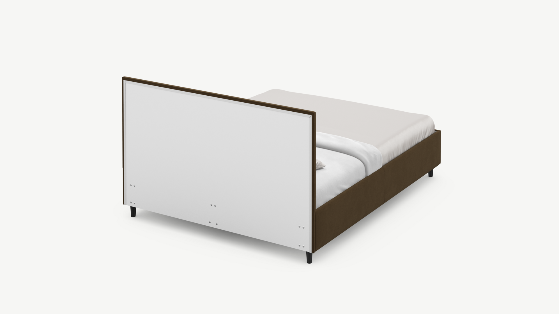 Стежка помещена в центр изголовья и обрамлена, словно картина. Объемные царги завершают цельную фигуру кровати и становятся гармоничным дополнением ее образа.