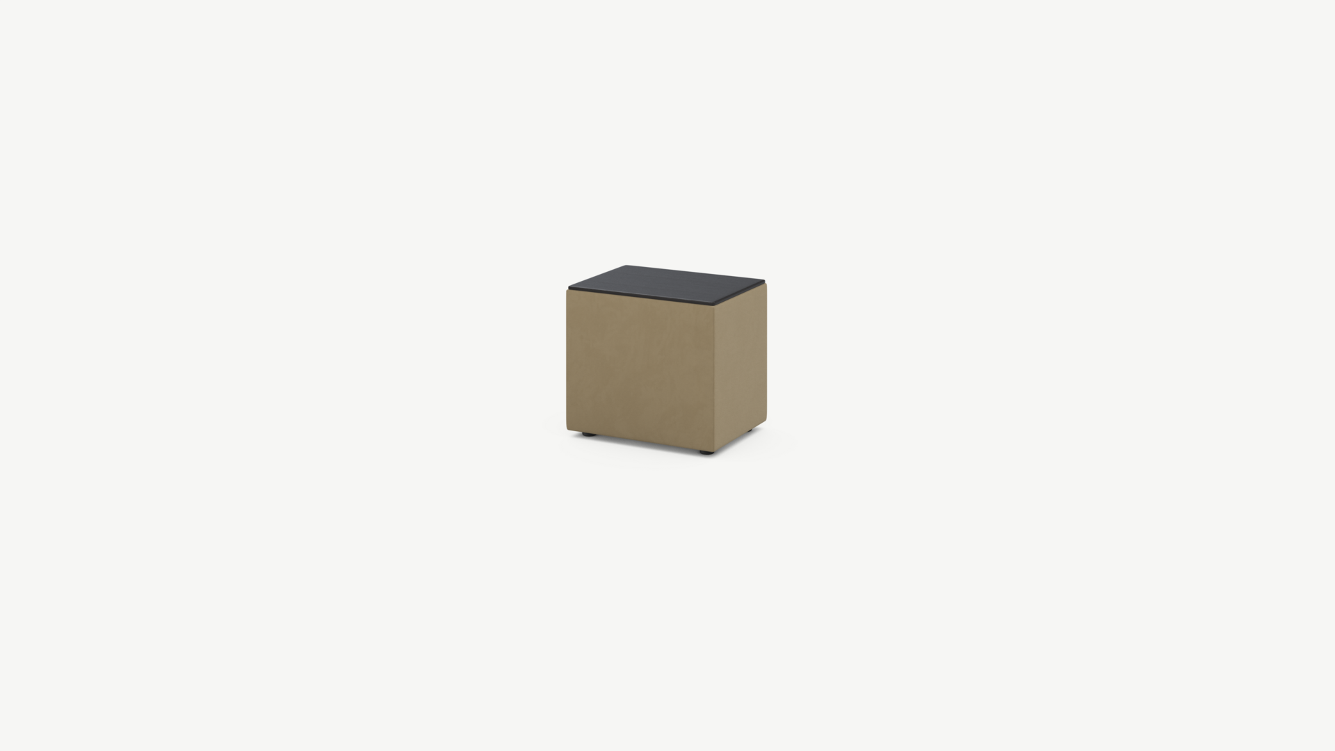 Обратная сторона тумбы, выполненная в обивочной ткани, позволяет ставить ее в центре комнаты и зонировать пространство.