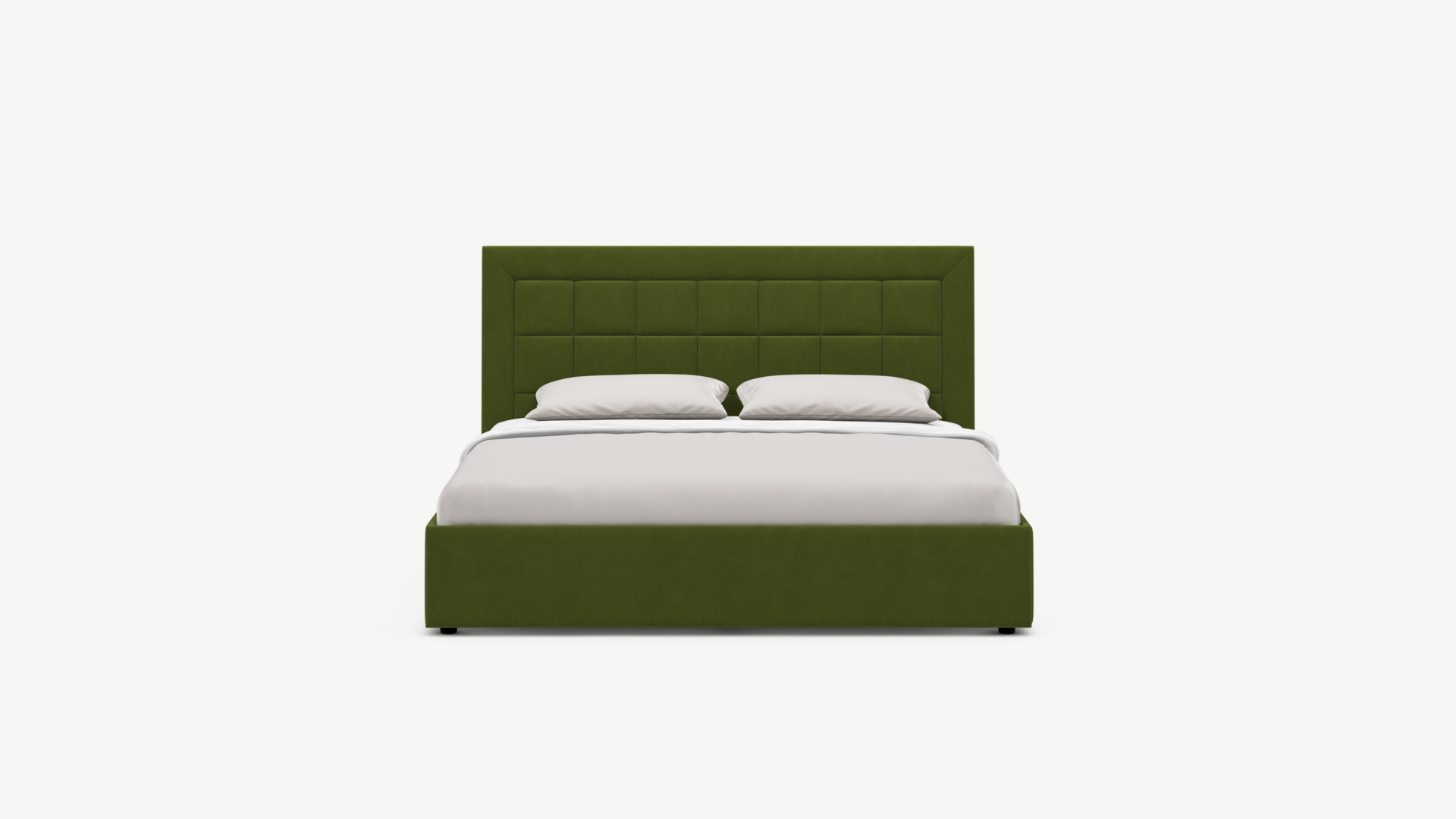 Стежка помещена в центр изголовья и обрамлена, словно картина. Объемные царги становятся гармоничным дополнением образа и завершают цельную фигуру кровати.