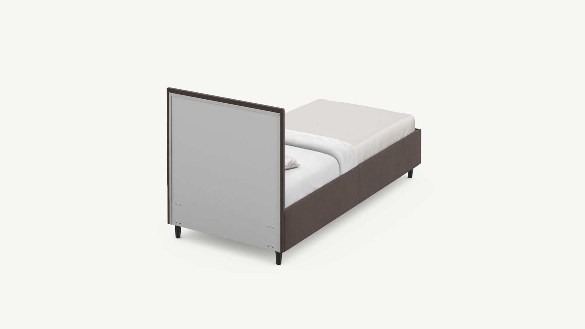 Стежка помещена в центр изголовья и обрамлена, словно картина. Объемные царги завершают цельную фигуру кровати и становятся гармоничным дополнением ее образа.