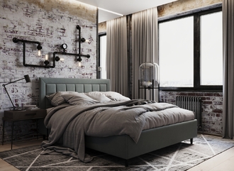Фактура обивочного материала подбирается дизайнерами с учетом технологических и стилевых особенностей кровати.