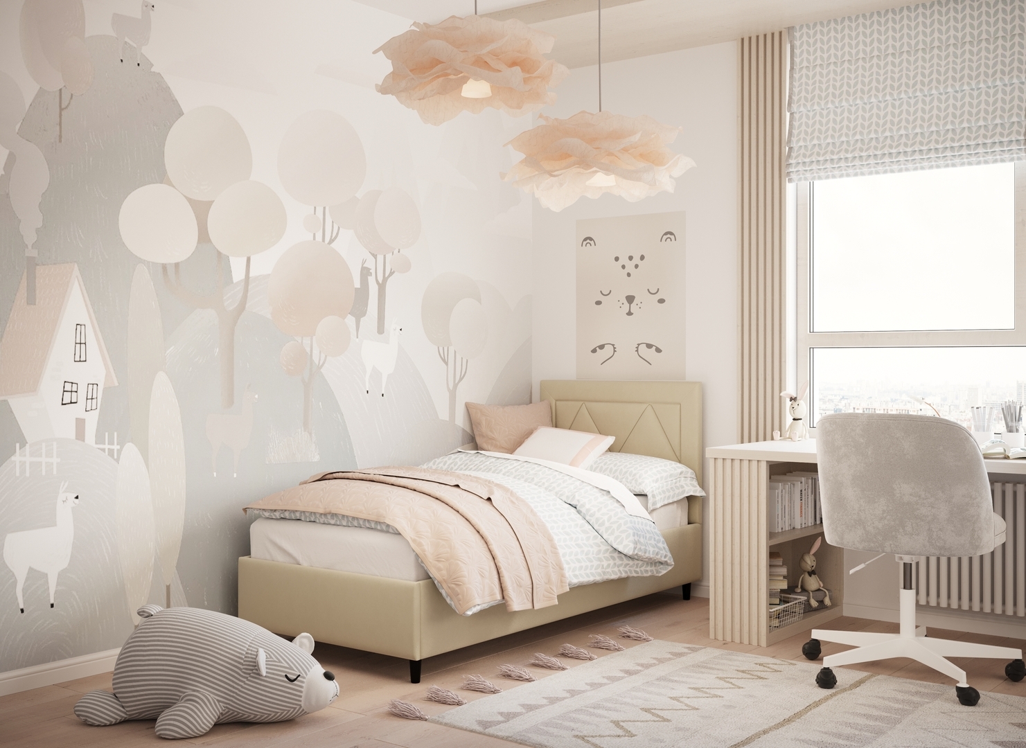 Фактура обивочного материала подбирается дизайнерами с учетом технологических и стилевых особенностей кровати.