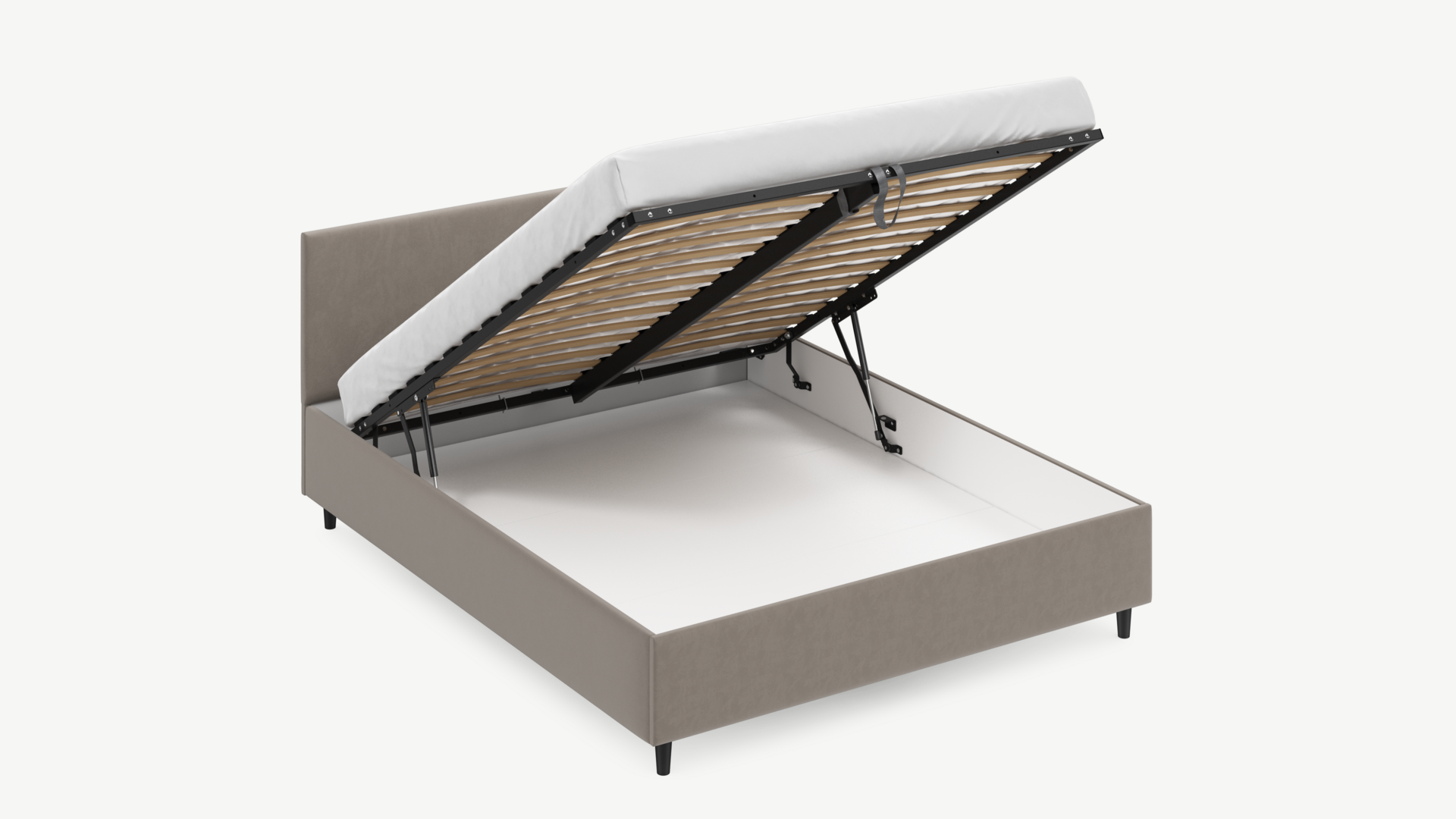 • Скрытая под основанием вместительная емкость без внутренних перегородок позволяет использовать всю площадь подкроватного пространства для хранения вещей.