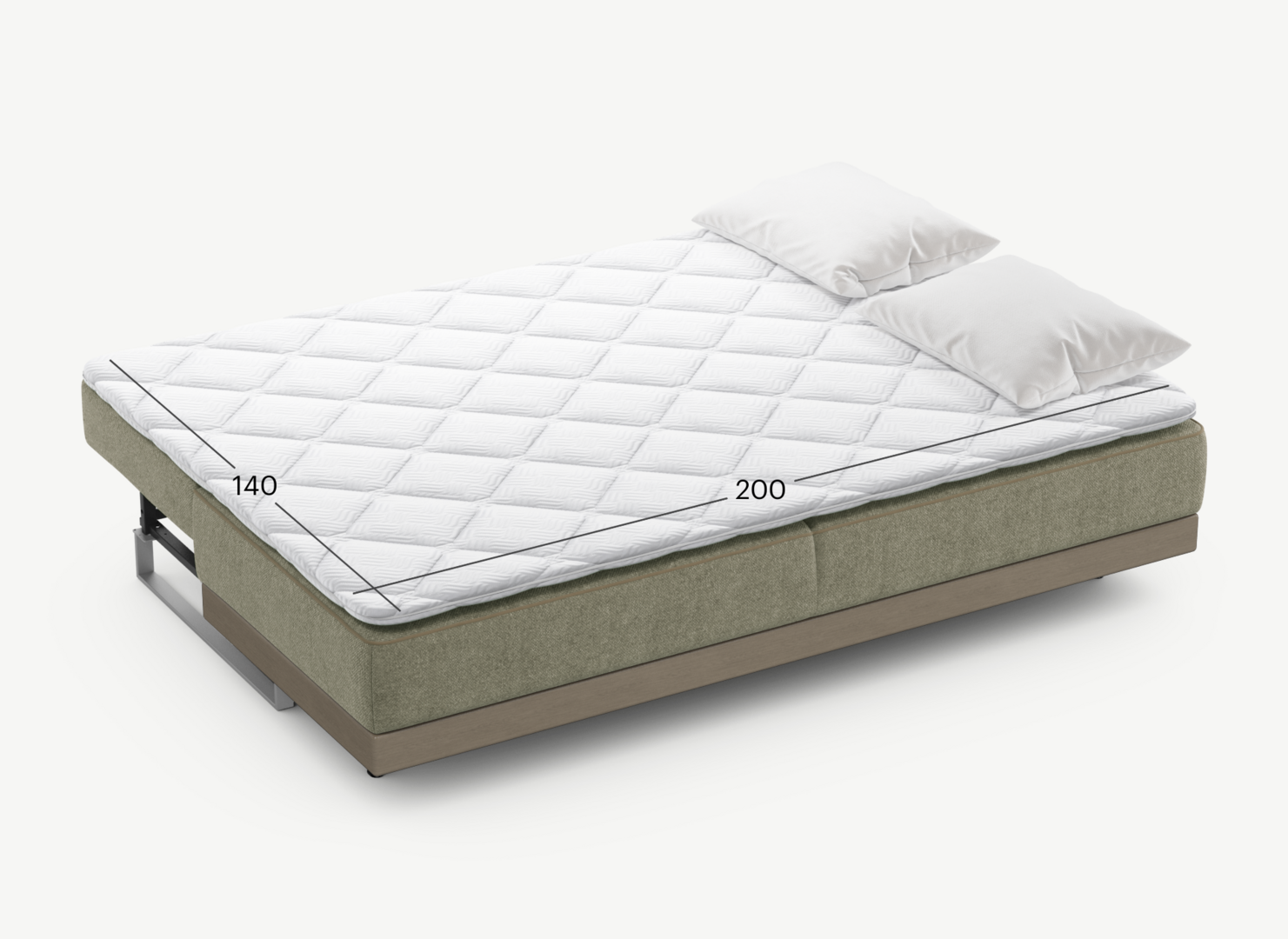 Механизм трансформации «Пантограф» подходит для ежедневного использования. Позволяет легко раскладывать и складывать диван, обеспечивая минимальный контакт дополнительных опор с напольным покрытием. Диван стоит на прямоугольных опорах, в то время как дополнительные остаются скрытыми, появляясь плавно и бесшумно в единственно нужный момент — при трансформации дивана в кровать.