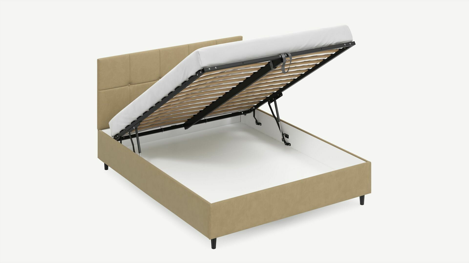 • Скрытая под основанием вместительная емкость без внутренних перегородок позволяет использовать всю площадь подкроватного пространства для хранения вещей.