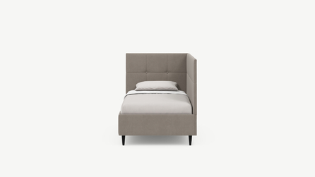Угловая односпальная кровать MOON FAMILY 1261 с мягкой спинкой и изголовьем создаст в Вашей спальне ощущение уюта. Крупная квадратная стежка привносит в интерьер графических акцентов, а вставка из пуговиц наполняет пространство ощущением домашнего тепла.