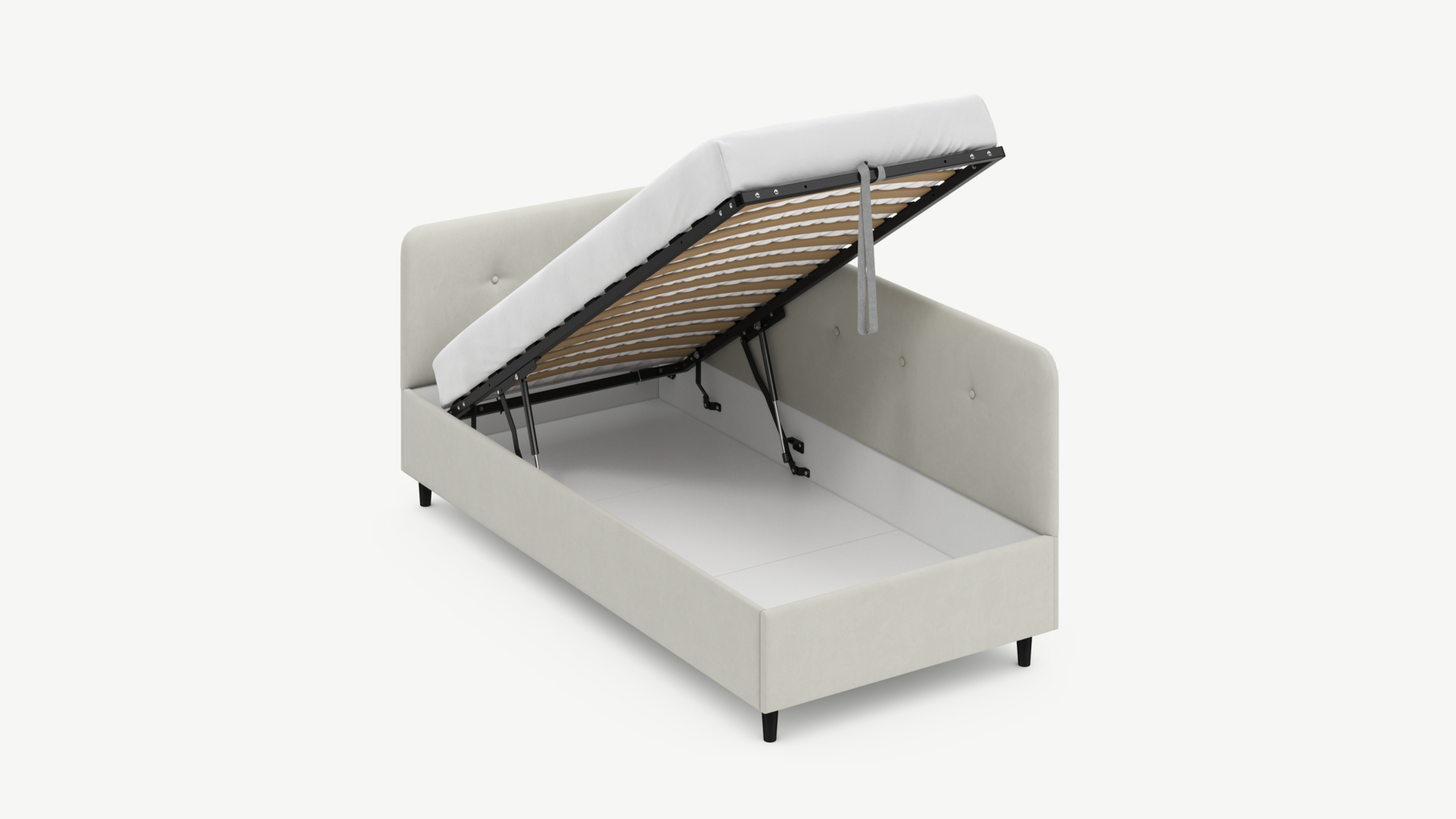 • Скрытая под основанием вместительная емкость без внутренних перегородок позволяет использовать всю площадь подкроватного пространства для хранения вещей.
