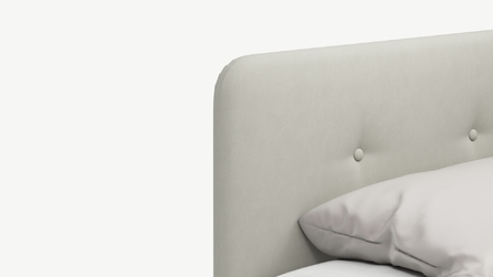 Угловая односпальная кровать MOON FAMILY 1253 с мягкой спинкой и изголовьем обладает округлыми формами, привносящими в интерьер нотки нежности. Изголовье, украшенное пуговицами, добавляет окружающему пространству шарм и уют. Высокие опоры придают кровати визуальной легкости, а также обеспечивают удобство во время уборки.