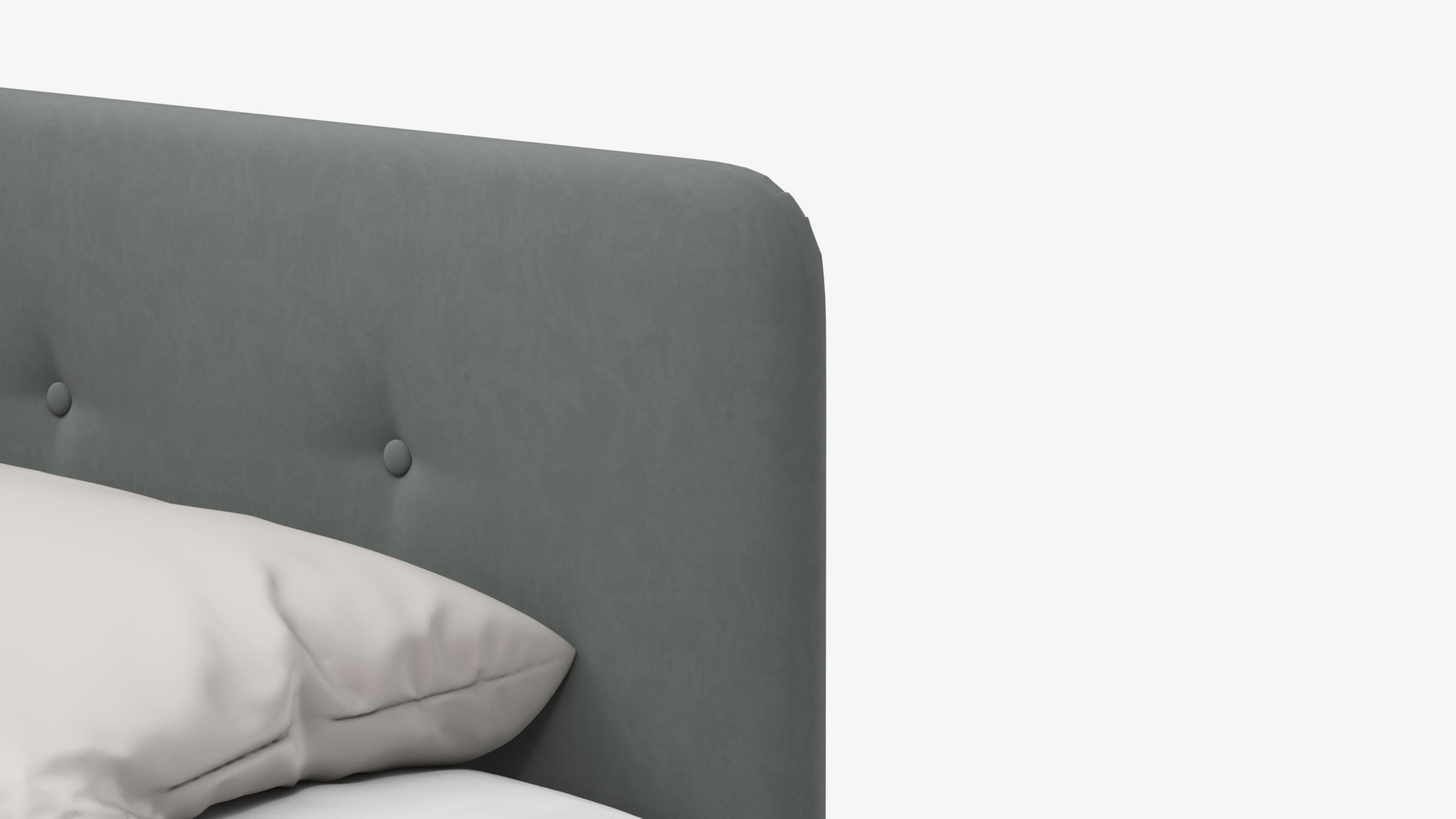 Угловая односпальная кровать MOON FAMILY 1253 с мягкой спинкой и изголовьем обладает округлыми формами, привносящими в интерьер нотки нежности. Изголовье, украшенное пуговицами, добавляет окружающему пространству шарм и уют. Высокие опоры придают кровати визуальной легкости, а также обеспечивают удобство во время уборки.
