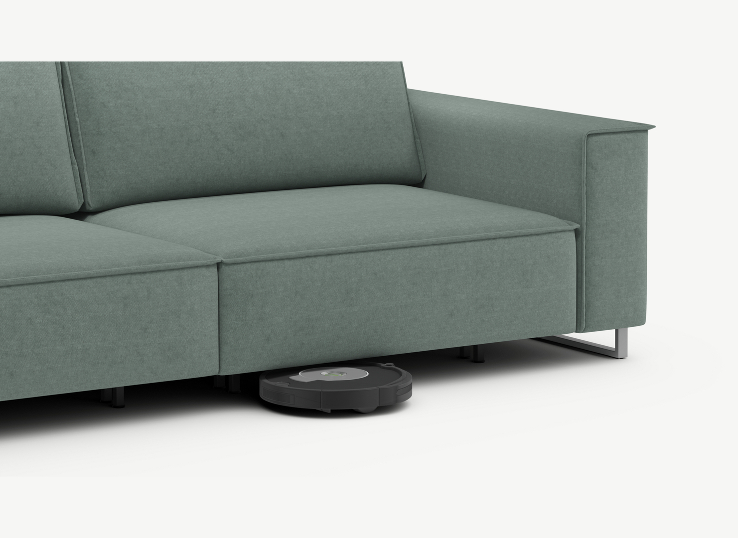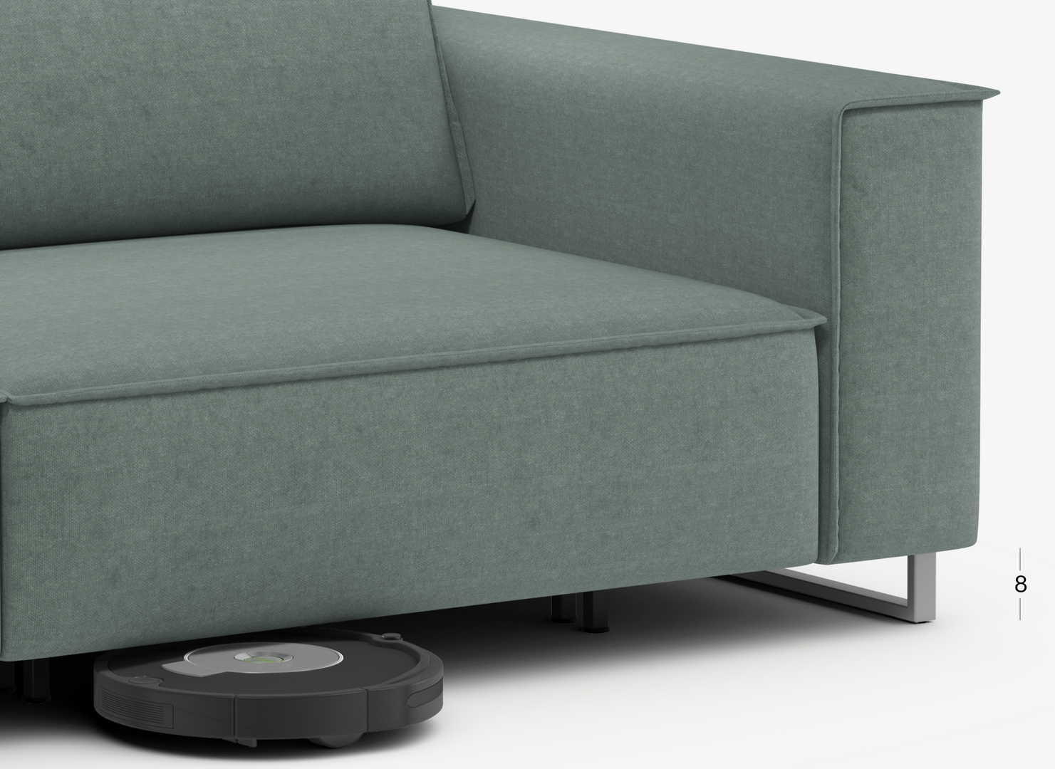 Благодаря высоким прямоугольным опорам под диваном проходит робот-пылесос и легко проводится влажная уборка, что обеспечивает чистоту и порядок в доме (при отсутствии бельевого короба под диванной секцией). Опоры представлены в четырех стандартных цветах на Ваш выбор: Графит, Серебро, Беж и Шоколад. Возможность выбора цвета позволяет создать максимально гармоничный интерьер.