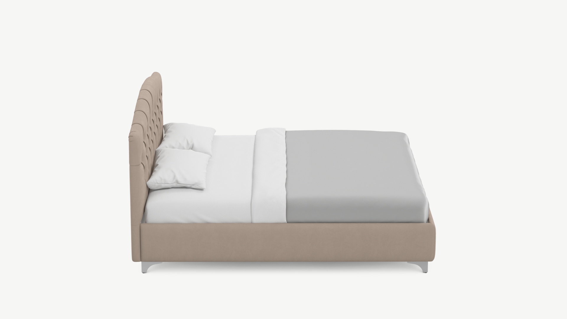 Кровать MOON 1157 создает ощущение праздника. Фигурное изголовье с классической каретной стяжкой формирует торжественный образ кровати, привнося в интерьер элементы дворцового стиля и роскоши.