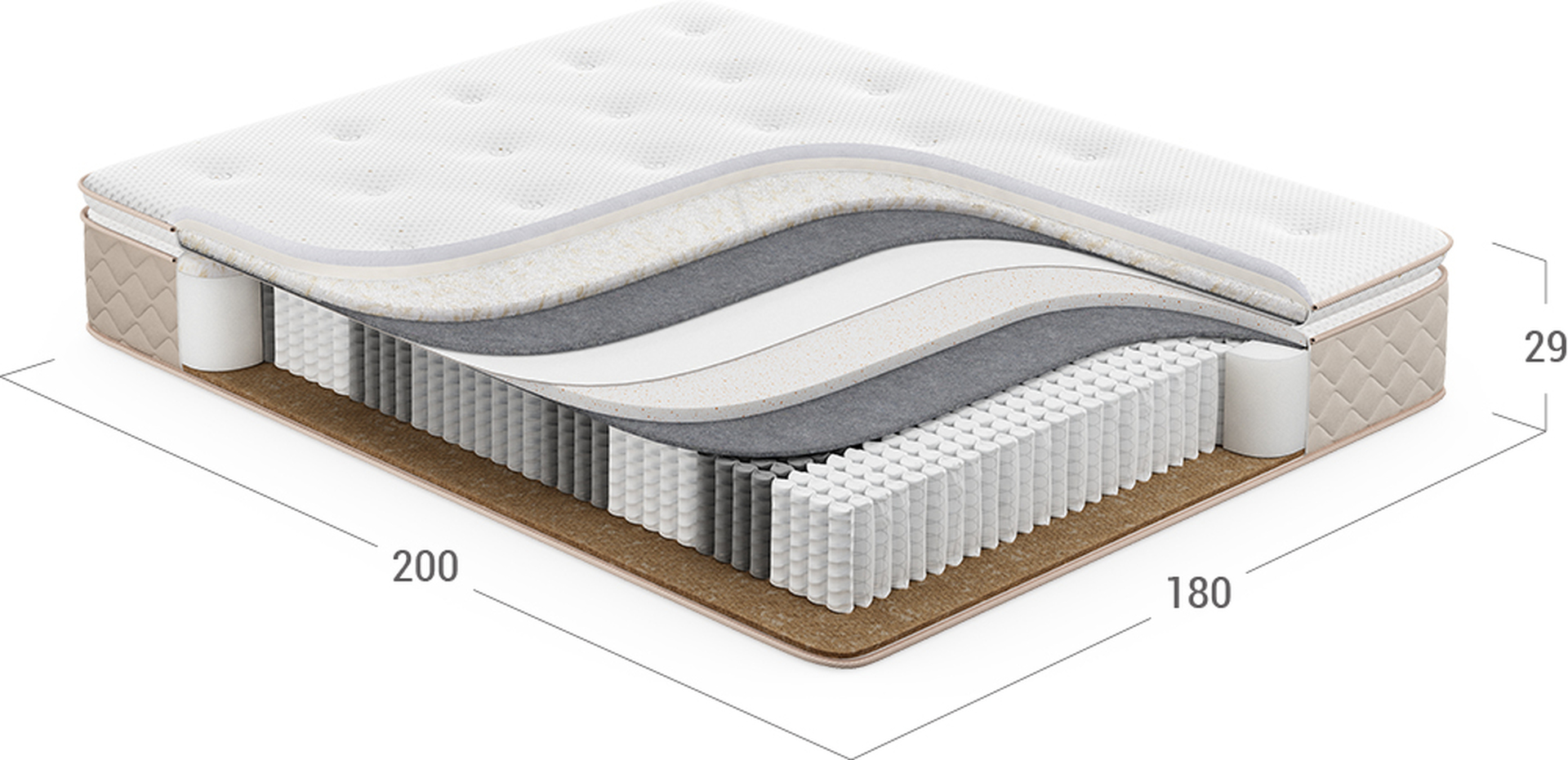 Надежно изолирует комфортные слои от соприкосновения с пружинным блоком и защищает материалы наполнения матраса от износа.