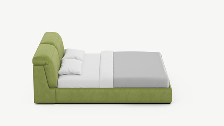 Изголовье подчеркивает эстетику MOON 1107, а также дарит дополнительный комфорт и уют спальному месту. Обратная сторона изголовья выполнена в мебельной ткани и позволяет ставить кровать в центре комнаты для зонирования пространства.