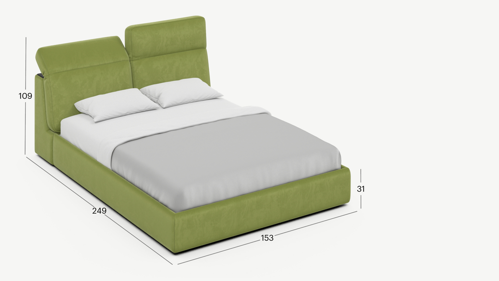 Пять вариантов наклона подушек изголовья поможет максимально удобно разместиться на кровати за чтением книг или просмотром ТВ. Фиксация подушек в вертикальном положении формирует традиционный образ кровати, в горизонтальном – ультрамодный.