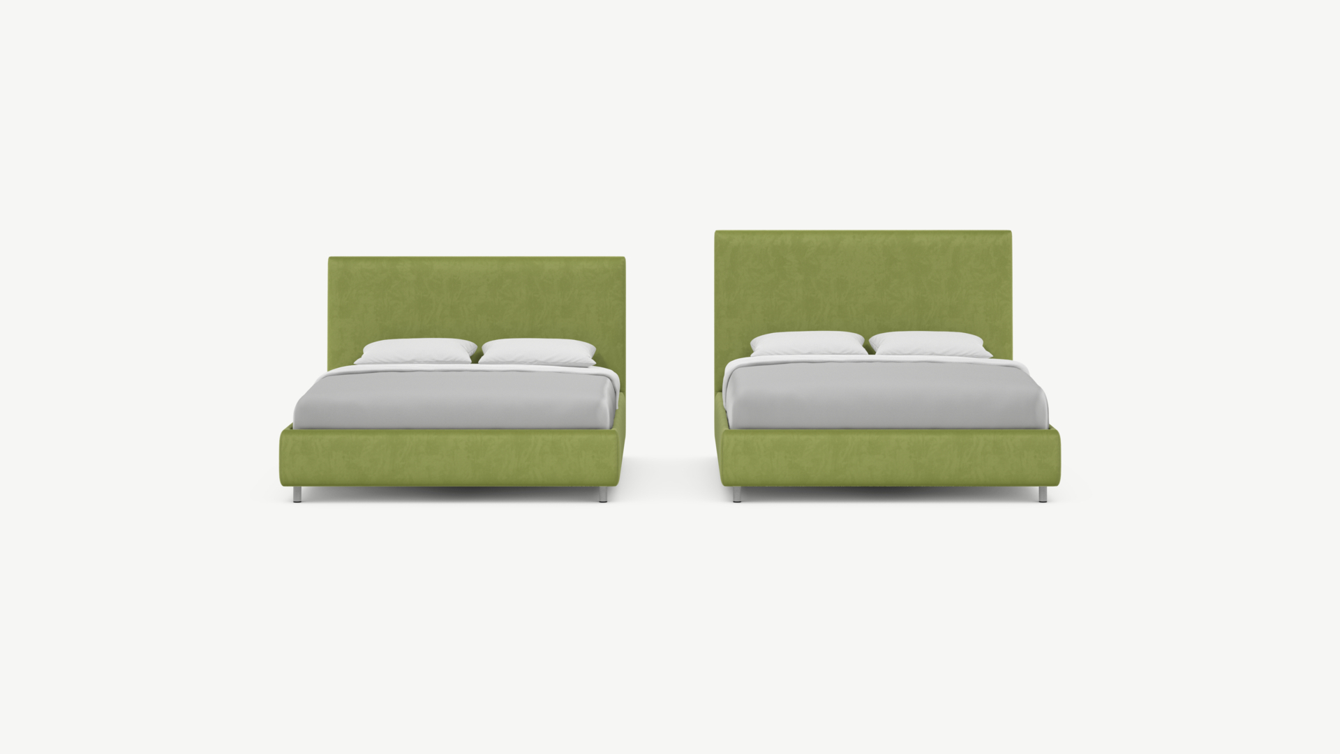 Творческий подход к выбору обивочного материала меняет образ дизайна MOON 1156. Например, однотонный гладкий велюр придает кровати эстетическую утонченность, в то время как фактурное тиснение на ткани усиливает игру перехода оттенков и выглядит особенно оригинально. Оформите образ кровати, выбирая обивку, которая подчеркнет звучание Вашей спальни и отразит Ваш вкус.